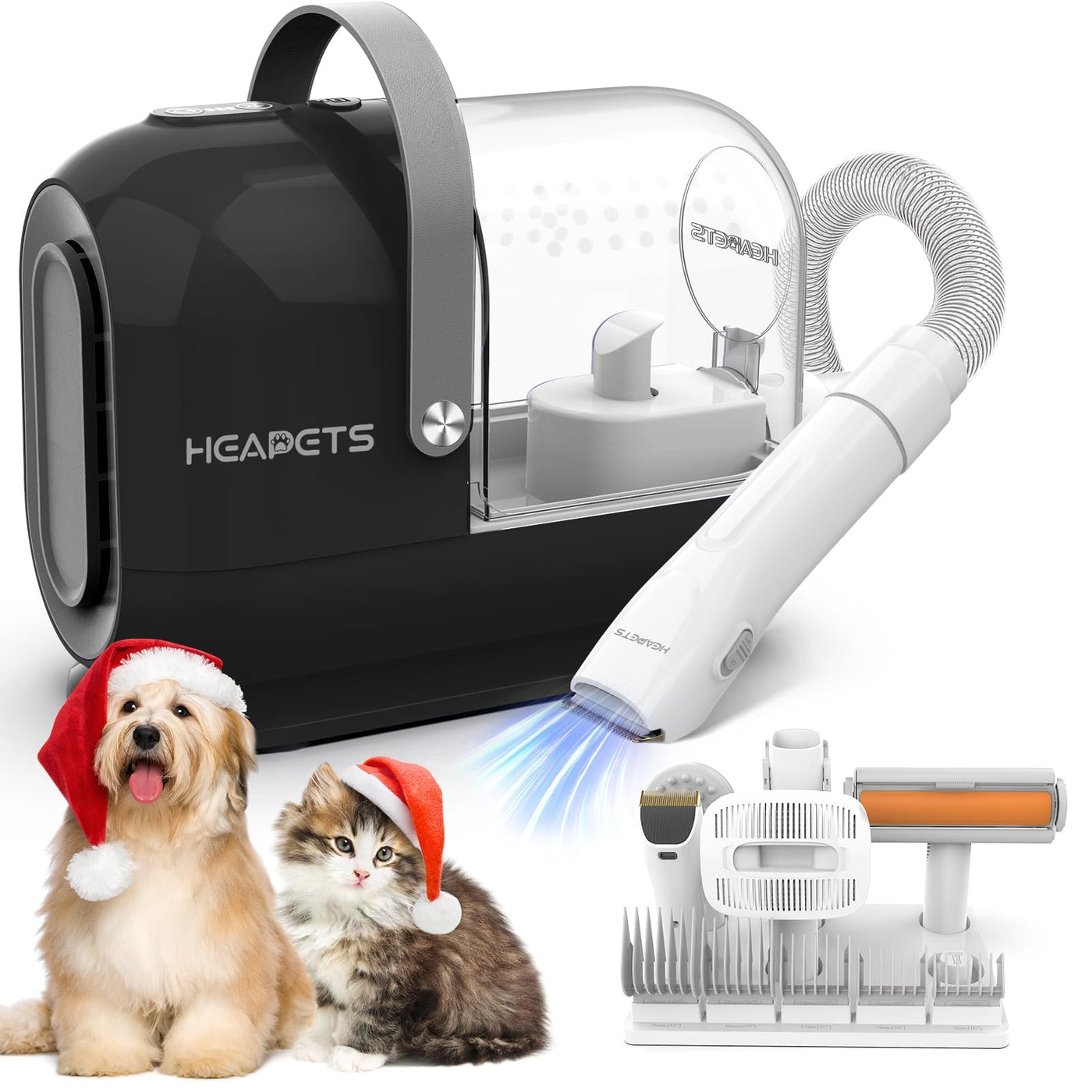 Heapets Dog Grooming Vacuum Kit - 3L Vacuum With 7 Tools, Low Noise Electric Clipper And Brush For Pet Shedding At Home, Black