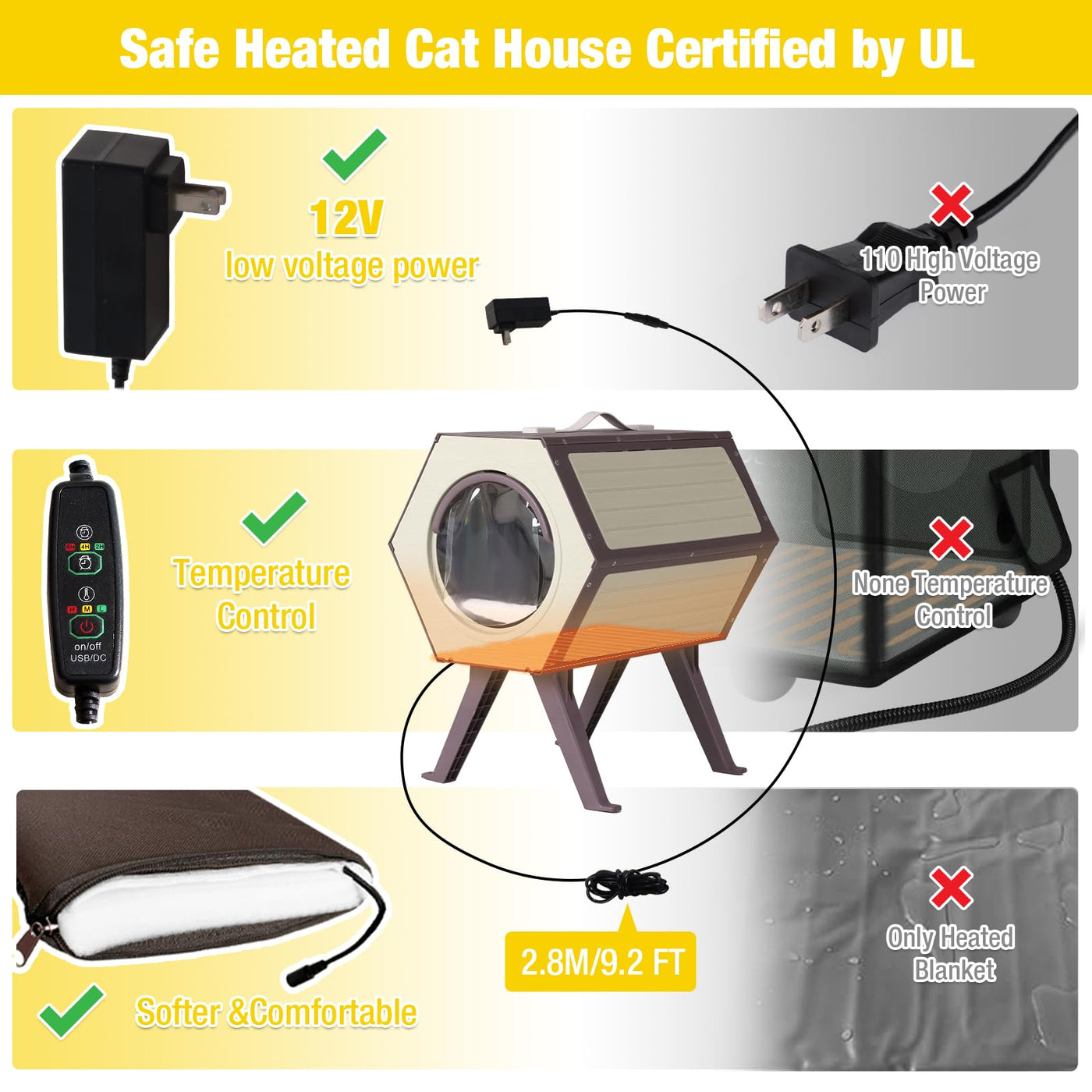 Heated Cat House For Outdoor Winter,Combined Cat Condo With Adjustable Temperature And Time, Insulated Outdoor Or Indoor Cat She