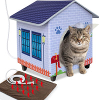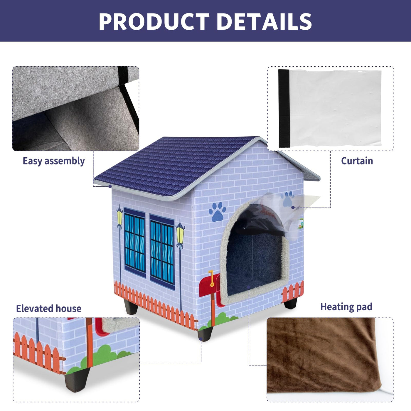 Heated Cat Houses For Indoor/Outdoor Cats With Elevated Heated Cat Bed Providing Safe Feral Cats, Easy To Assemble