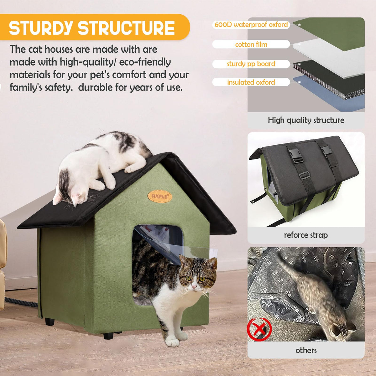 Heated Cat Houses For Outdoor Cats - Elevated Weatherproof Insulated Heated Outdoor Cat House For Winter - Feral Cat Shelter For