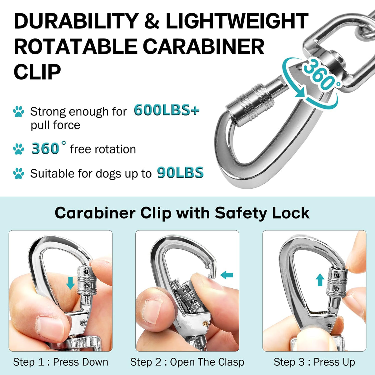 Heavy Duty Dog Chain For Yard-15Ft Metal Dog Chain Leash Chew Proof,Long Dog Lead For Outside With Strong Swivel Hook,Outdoor Do