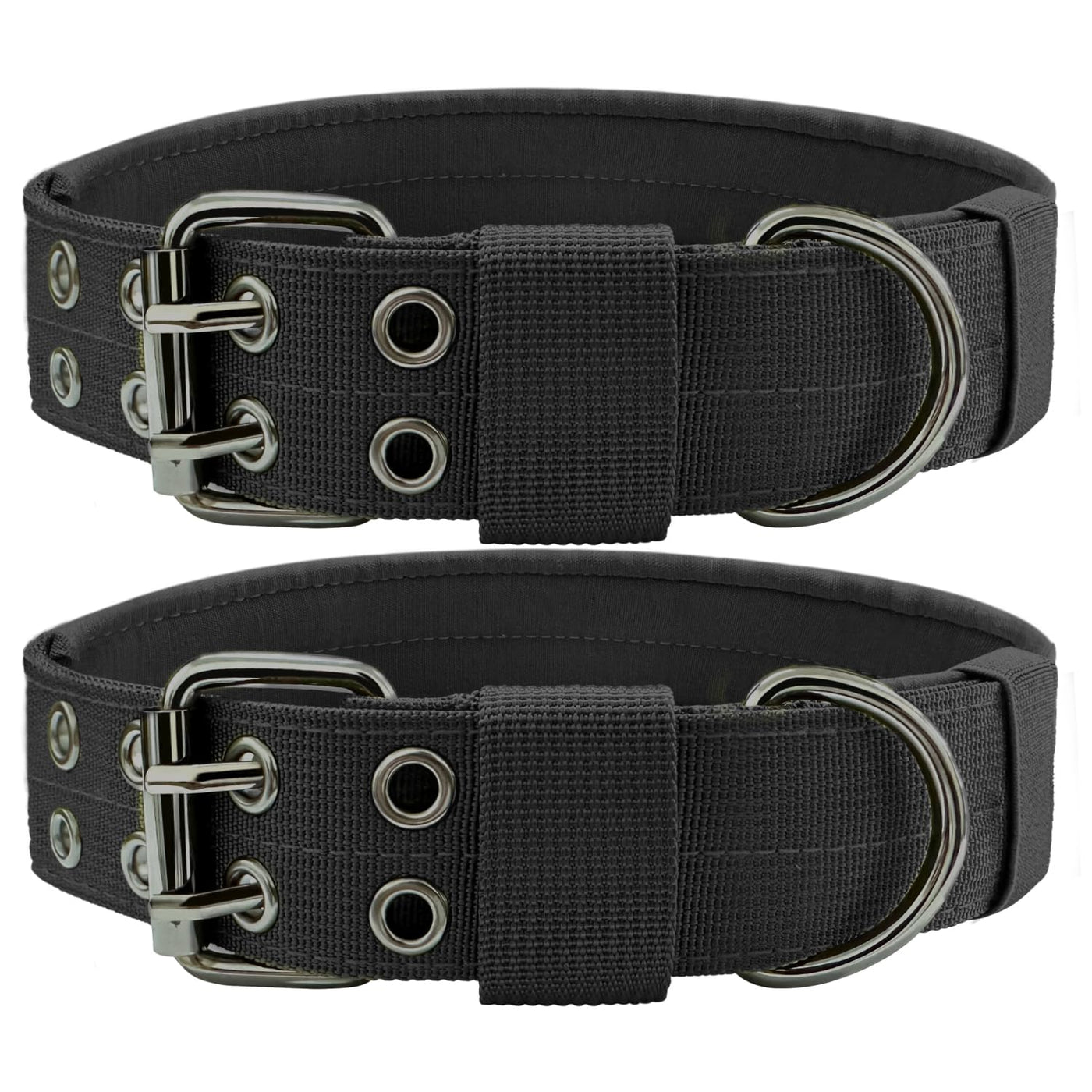 Heavy Duty Dog Collar for Large Dogs, 2 PCS Tactical Dog Collars with Metal Buckle & D Ring, 1.5'' Width Thick Adjustable Nylon