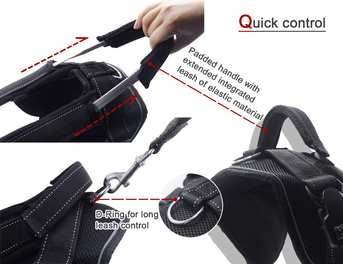 Q: Is the harness reflective for safety during night walks?A: Yes, the Heavy Duty Dog Harness includes reflective stitching, ensuring high visibility during nighttime walks or in low-light conditions, thus enhancing your dog's safety.
