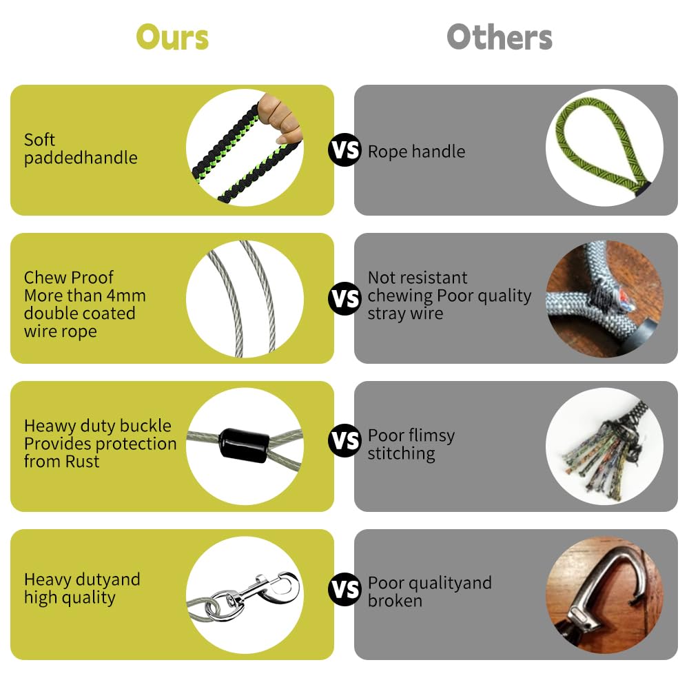 Heavy Duty Dog Leash, Chew Proof Metal Leash For Large Dogs (Up To 250Lbs), Wirerope Dog Leashes With Soft Silicone Grip (Grey,