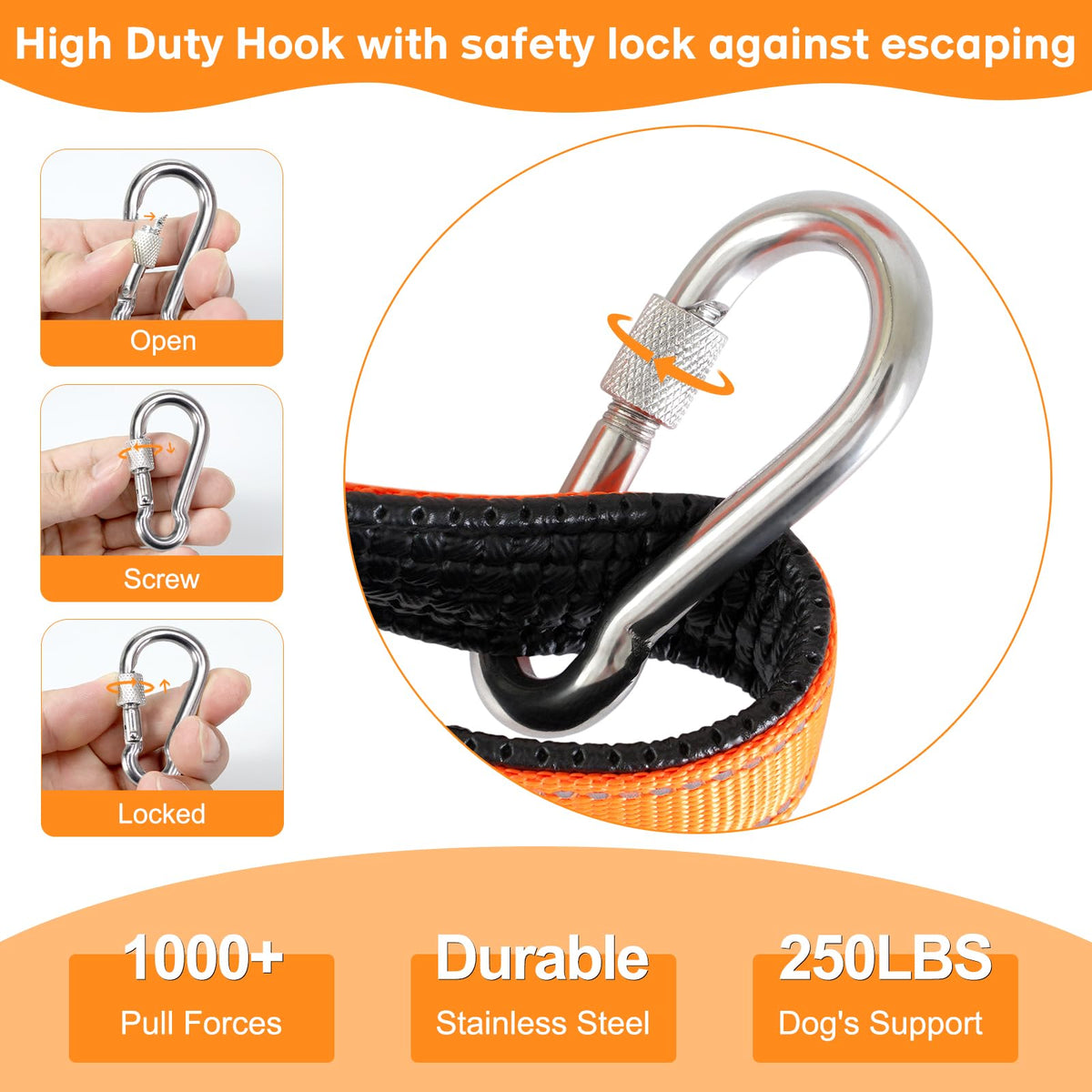 Heavy Duty Dog Leash - Chew Proof Tie Out Cable, 10/20/30/50Ft With Carabiner, Sturdy Long Leashes For Medium Large Dogs, Padded