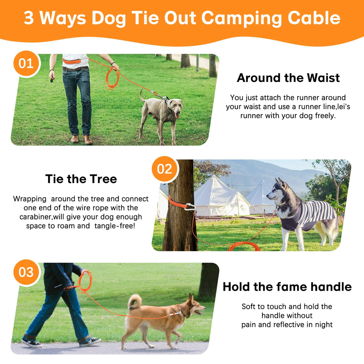 Dog Leash Rope Dog Tie Out Cable For Small Medium Large Dogs, Dog Reflective Soft Padded Handle For Walking,Training, Hiking,Camping, Chew-Proof Strong Heavy Duty Lead Dog Leash