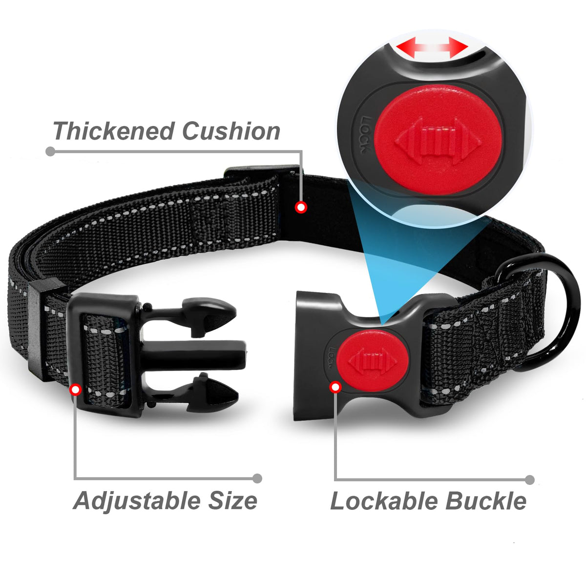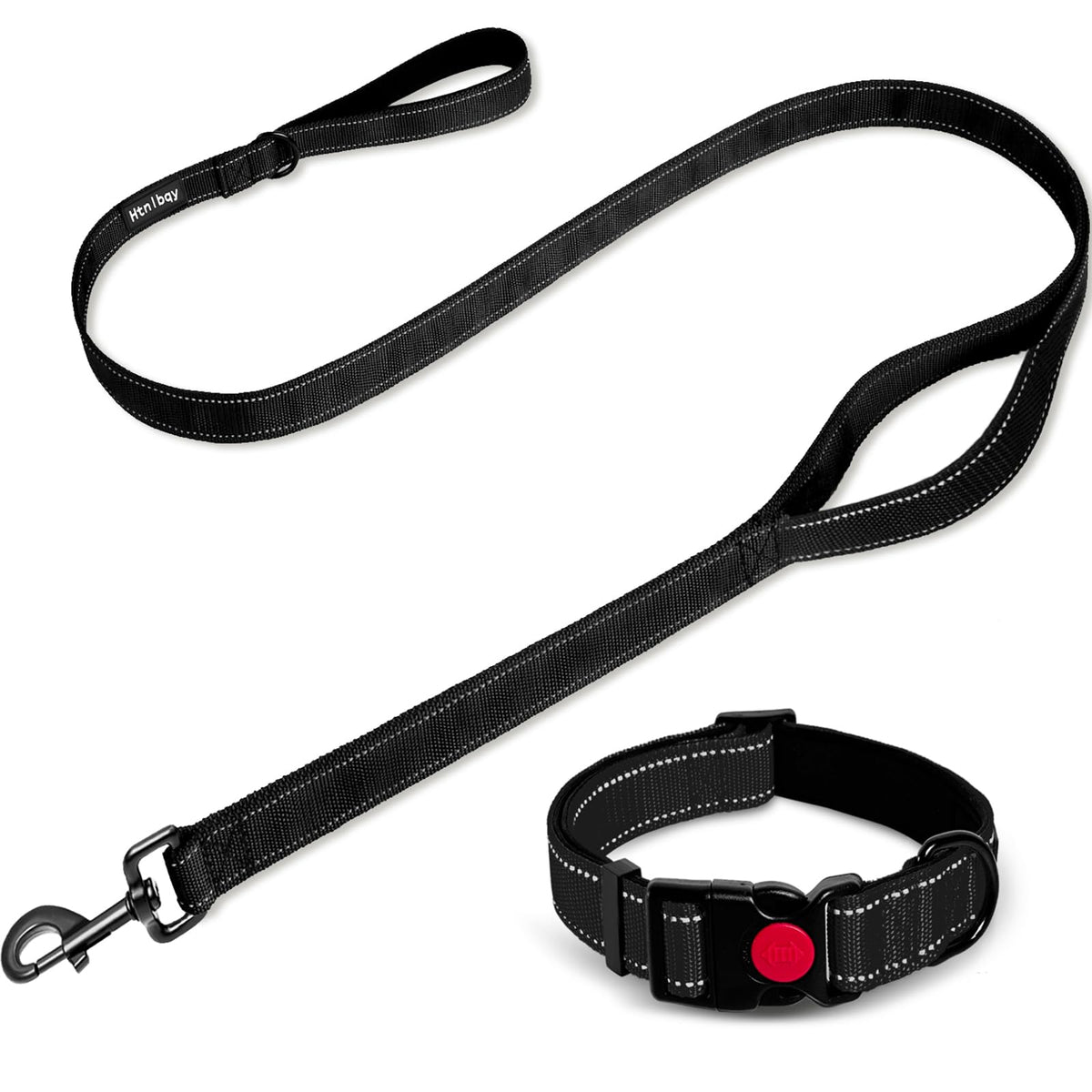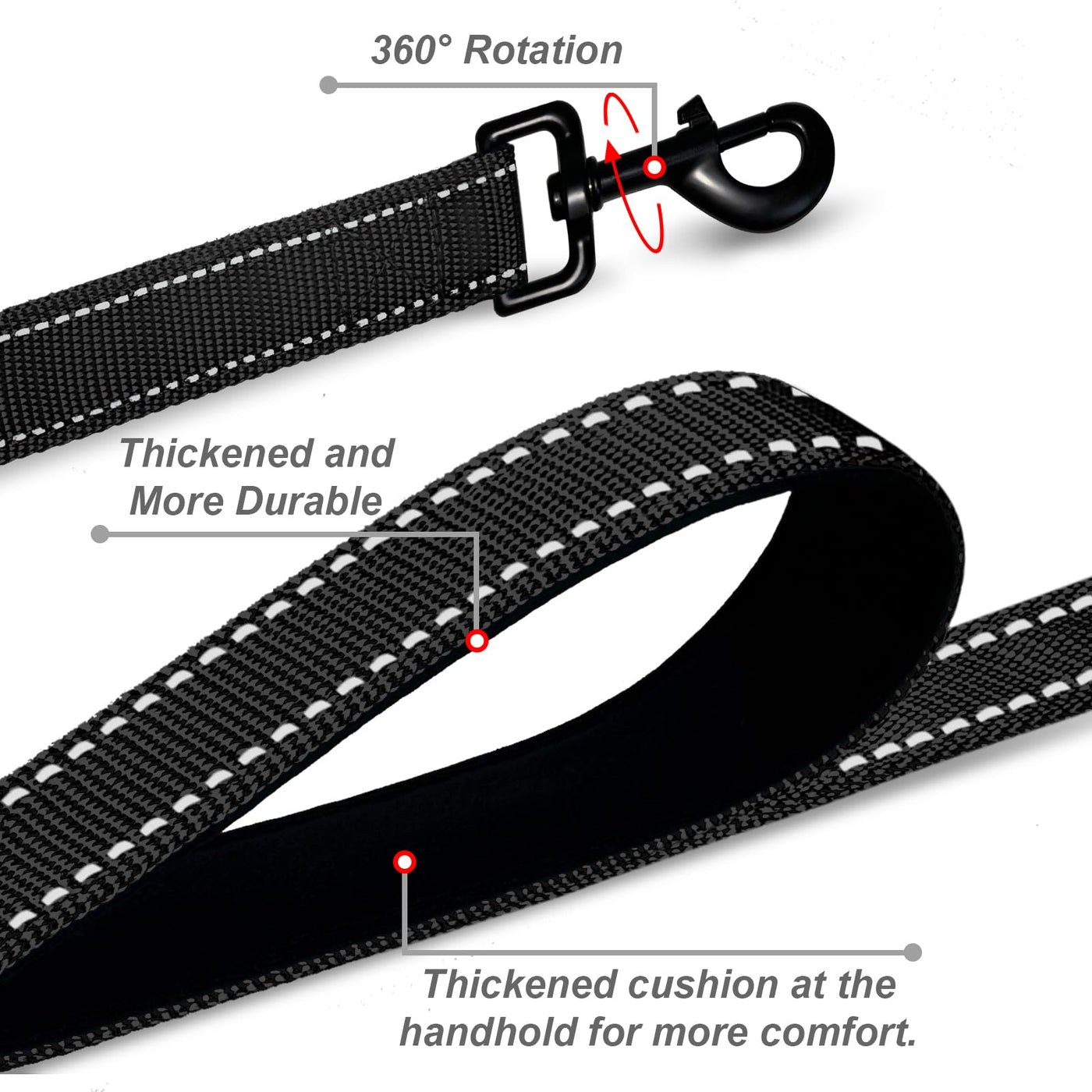 Heavy Duty Dog Leash For Large Dogs - Double-Sided Reflective, 6Ft With Padded Handle, Nylon Reinforced Reflective Buckle Collar