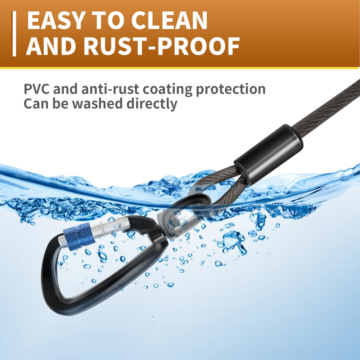 Introducing Our Heavy-Duty Tie Out Cable For Dogs, The Perfect Choice For Providing Your Dog With A Safe And Secure Outdoor Experience Made From A 6Mm-Diameter Stainless Steel Wire With Vinyl Coating, This Dog Cable Is Resistant To Chewing And Rusting, Ensuring The Safety Of Your Furry Friend Equipped With Ergonomic Handles That Fit The Human Hand Comfortably, It Is Easy To Carry And Store The Long Cord And Can Be Used As A Handle For Leash Control While Walking Your Dog The 360-Degree Rotating Design Of The Hook Provides More Flexibility, And The Included Safety Buckle Ensures That Your Dog Can Move Freely While Remaining Safe And Secure The Rust-Resistant Coating On The Hook And The Vinyl Material Of The Cable Make It Safe To Use On Lawns, And It Can Easily Be Cleaned With Water If It Becomes Dirty Or Covered In Dust Whether You Want To Tie It To A Tree, Use It On A Dog Post, Or Use It As A Long Dog Leash, Our Dog Cable Is Versatile And Provides A More Natural And Comfortable Outdoor Experience For You And Your Furry Friend Get Yours Now And Enjoy Worry-Free Playtime With Your Dog