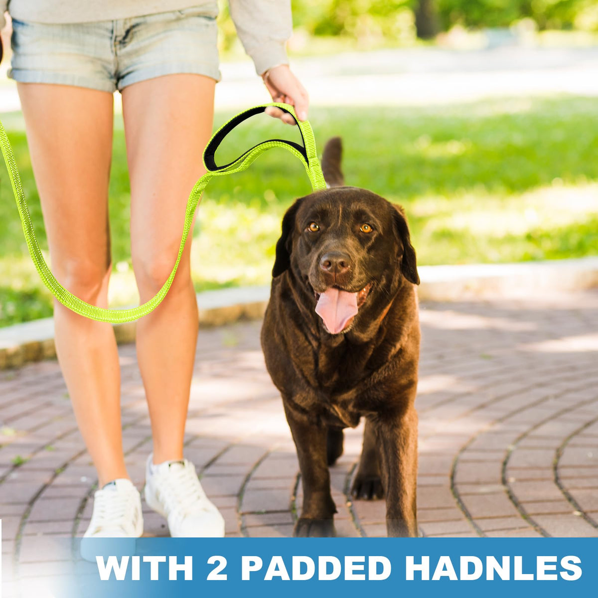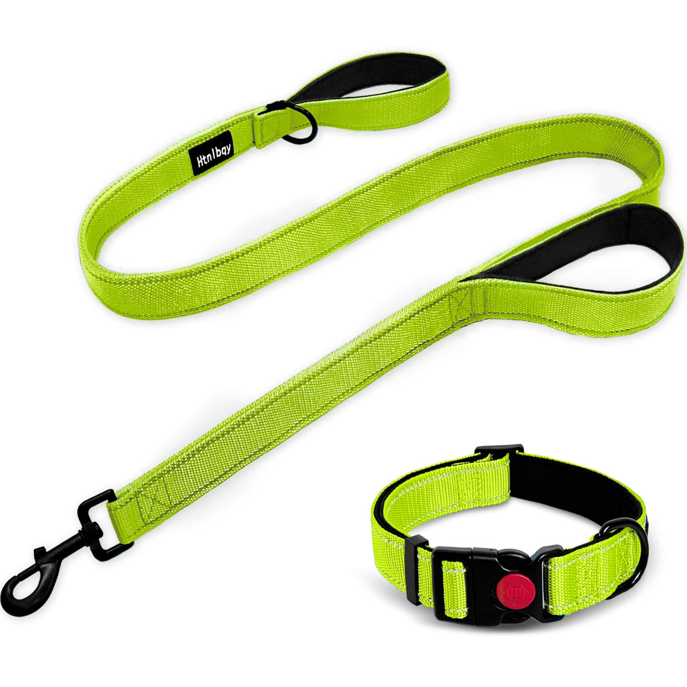 Heavy Duty Double-Sided Reflective Dog Leash, Padded Handle Nylon Reinforced Reflective Buckle Dog Collar, Green, Large, 6Ft