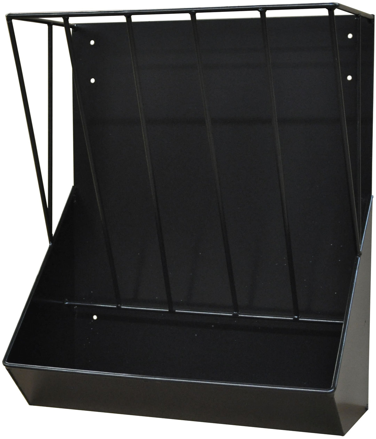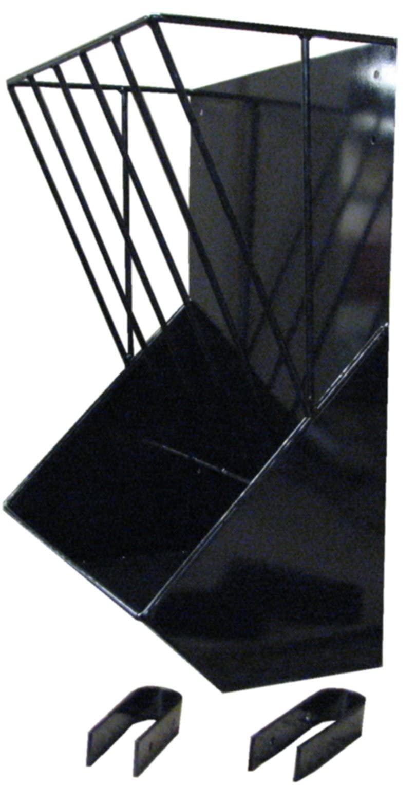Country Manufacturing Wall Mount Combination Feeder Dual use- can feed both hay and grain. Use in multiple locations- hangs on fence or trailer or mounts to your stall wall. Rugged 16 gauge steel construction with heavy steel hay bars. Removable hangers are made to hold up to heavy use by horses. Features: Use in stall, corral, or trailer Heavy duty construction Reduces wasted hay Mounting hardware included Proudly Made in the USA! Item Specifications: Size: 24 W x 12 deep x 30 H Capacity: Holds 1 Flake- Hay 5 gallons- Grain Material: 16 gauge steel