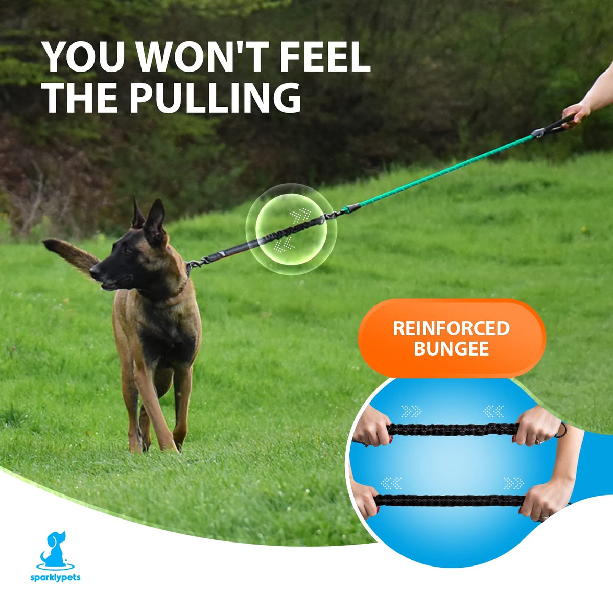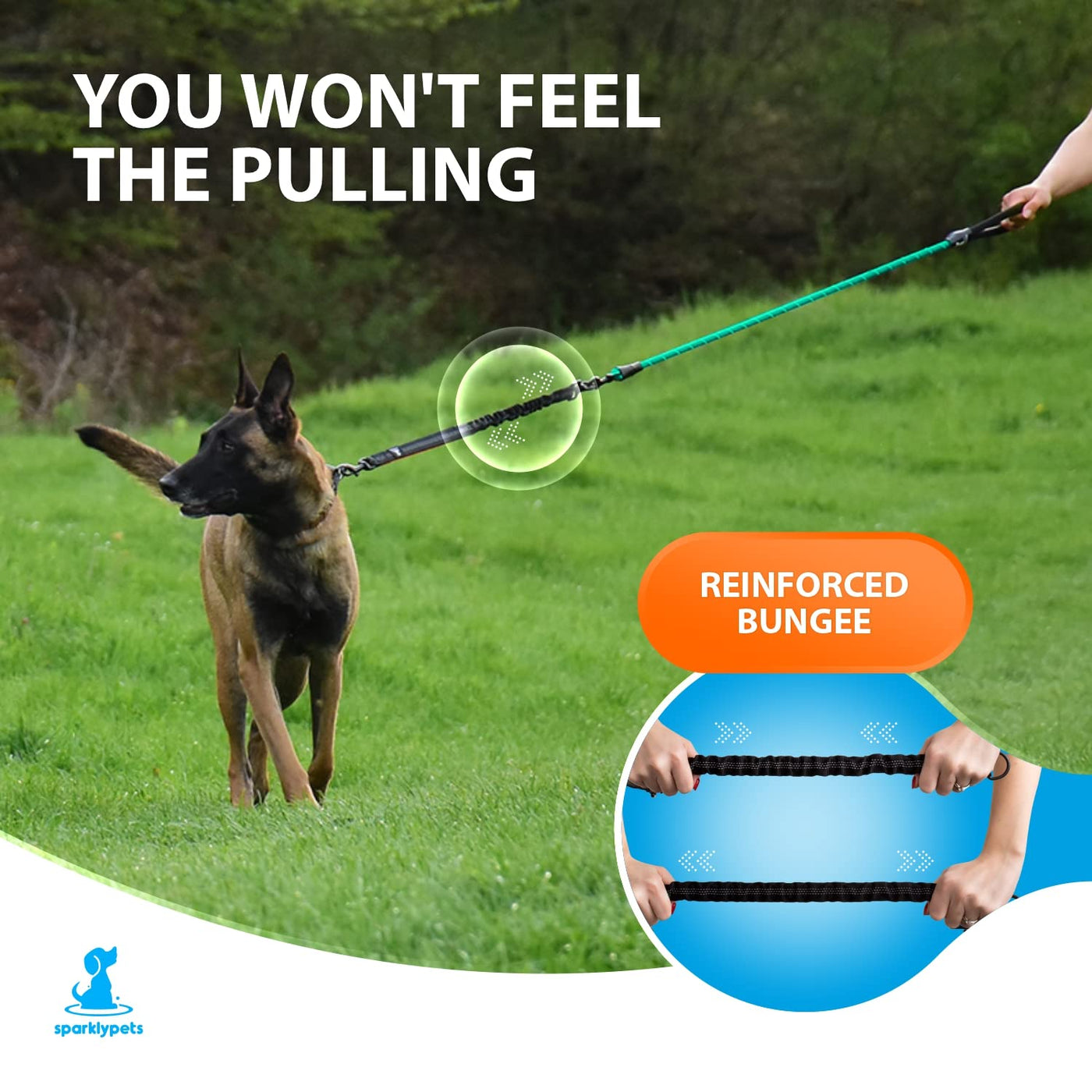 Anti-pulling resistant training leash - Braided with tough nylon SparklyPets Rope Leash is made for dogs who easily wear through regular leashes For strong dogs - Featuring a thick rope metallic hook leather joints and elastic bungee rope leash is perfect for stronger dogs Shock absorbing bungee - When you buy your big dog leash today you will also receive an elastic bungee to offset the pulling Modern and Stylish - Style meets function in this dog leash set that comes in four colors for you to choose from Well-crafted and reliable in your hands SparklyPets Rope Dog Leash is undoubtedly one of the best dog leashes for large dogs youAll find on the market Our gentle leash for dogs is made with a lot of attention to detail to ensure you and your puppy the best walking experience You will absolutely love your nylon leash with extension bungee