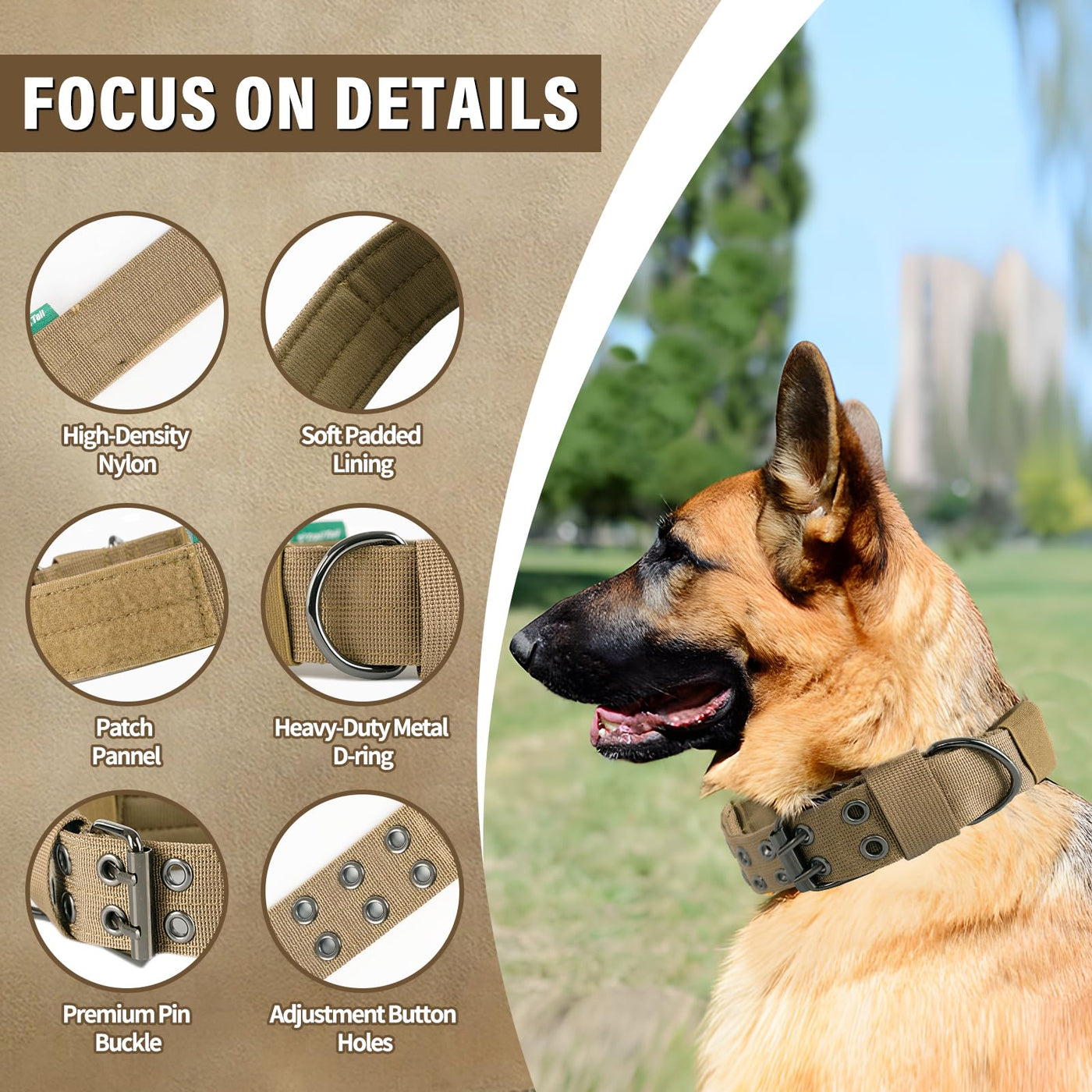 Trail Tail Heavy Duty Dog Collar, Tactical Dog Collar For Large Dogs, Thick Pitbull Collar, M-L-Xl Wide, Metal Buckle, Suitable German Shepherd, Pitbull, Rottweiler, Indestructible