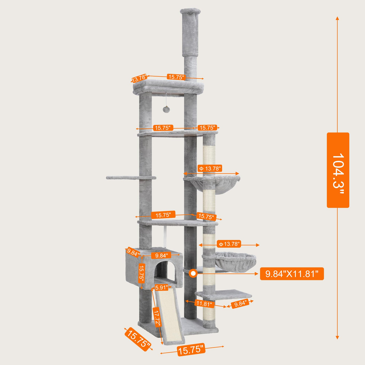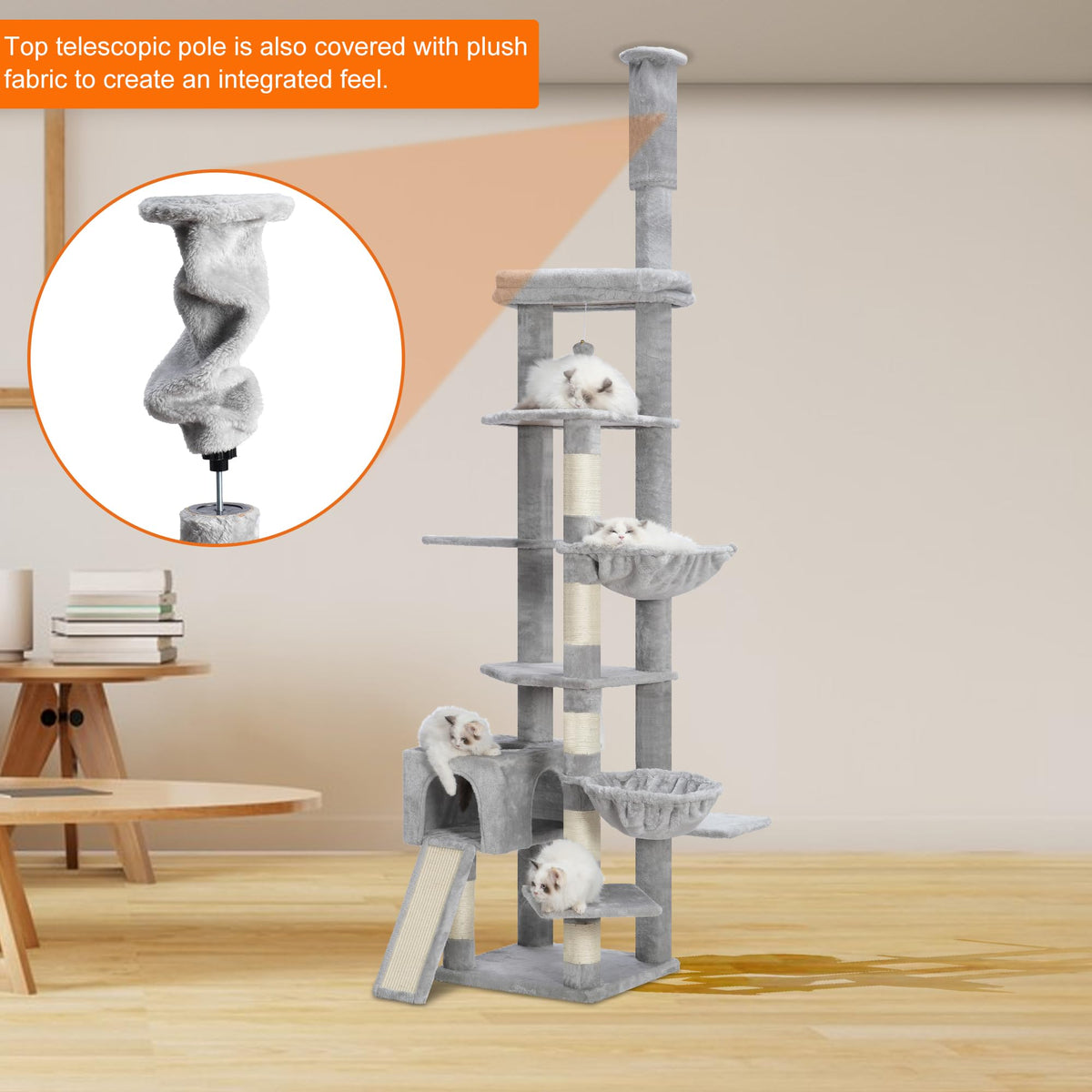 Hebly Cat Tree 92.5-104.3 Inches With Hammock, Floor To Ceiling Cat Condo,Tall Cat Climbing Tower Adjustable With Scratching Pos