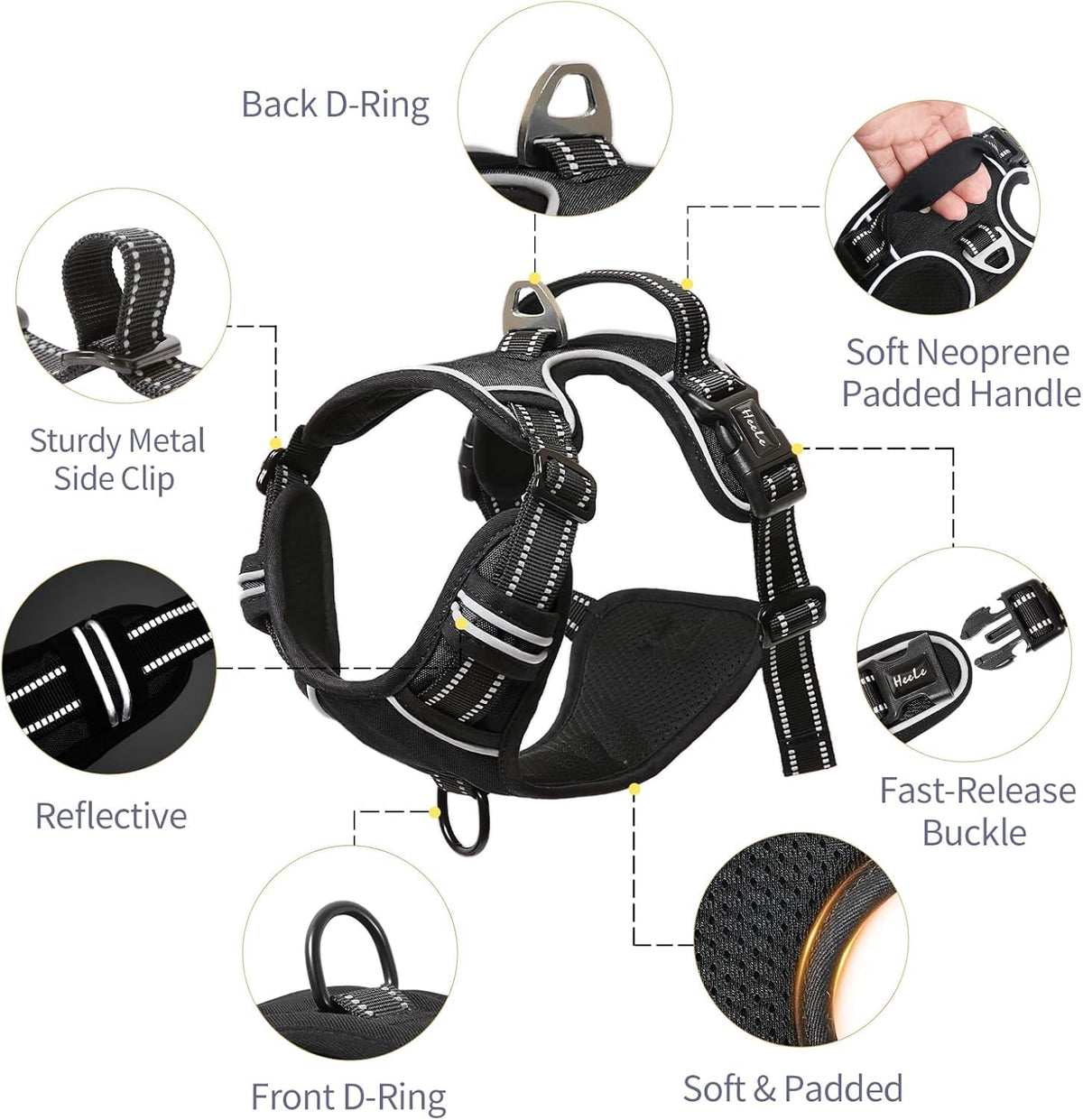 Heele Dog Harness For Small Medium Large Dogs With Soft Handle Heele Dog Harness Is Stylish, Safety, And Durable. Heele Dog Vest Harness Do The Best To Prevent The Dog Injuries Than A Collar. From A Training Perspective, This Harnesses Are Useful For Teaching Your Dog Not To Pull As The Pressure From A Harness Is More Evenly Distributed Around Your Dog'S Body. Reflective Nylon Webbing Ensure Good Visibility For This High-End Dog Harness.Compare To Other Harnesses To See The Difference In Our Quality And Appearance. Please Refer To The Size Chart Image For Correct Item Dimensions Before You Buy. Features: 1. The Harness Is Specially Built To Distribute Pressure Evenly And Safely Around Your Dogs' Chest Rather Than Sensitive Neck, Thus Preventing Choking. The Thoughtfully Designed Construction Would Not Rub Your Dog'S Sensitive Skin. 2. 2 Metal Clips And 1 Sturdy Handle Make Your Dog A Happy Dog! Front Clip: Give You More Control On Your Dog'S Trajectory To Let It Learn To Heel And Lessen Their Desire To Pull. Let Your Dog Actively Focus On You During Walk, Which Is Very Important For Training. Chest Clip:Give Your Dog A Comfortable Control. Suitable For Casual Walking. Handy Sturdy H?Ndl?: With A Sturdy Handle On The Back,You Can Control Your Dog Directly By Your Hands. H?L? ??U To M?N?G? D?Ff??Ult Situations ?U?H ?? Wh?N ??U ?R? B?Th?R?D B? ?N?Th?R D?G ?R If ??U ?R? Guiding Your Dog Into A Car. 3. Easy To Wear: Fully Adjustable At Neck & Chest With 4 Adjusters. No Need To Adjust It Too Often Once Customized A Snug And Nice Fit For Your Dog. Just Slip It Over The Head, Connect The Quick Release Fasteners And Off You Go.