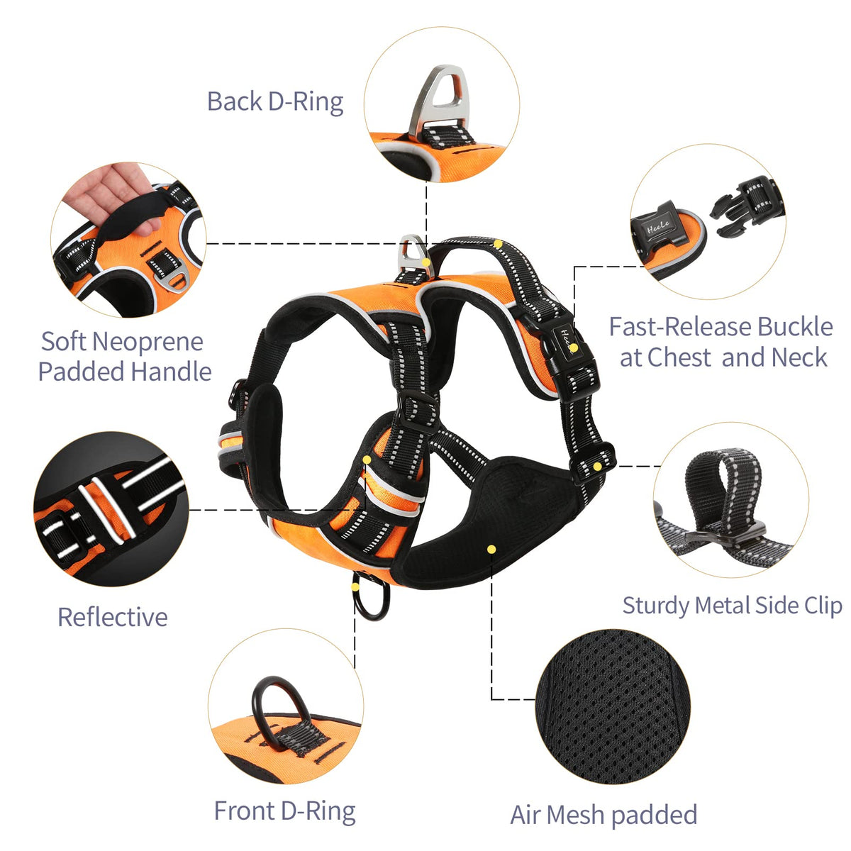 Heele Dog Harness For Small Medium Large Dogs With Soft Handle Heele Dog Harness Is Stylish, Safety, And Durable. Heele Dog Vest Harness Do The Best To Prevent The Dog Injuries Than A Collar. From A Training Perspective, This Harnesses Are Useful For Teaching Your Dog Not To Pull As The Pressure From A Harness Is More Evenly Distributed Around Your Dog'S Body. Reflective Nylon Webbing Ensure Good Visibility For This High-End Dog Harness.Compare To Other Harnesses To See The Difference In Our Quality And Appearance. Please Refer To The Size Chart Image For Correct Item Dimensions Before You Buy. Features: 1. The Harness Is Specially Built To Distribute Pressure Evenly And Safely Around Your Dogs' Chest Rather Than Sensitive Neck, Thus Preventing Choking. The Thoughtfully Designed Construction Would Not Rub Your Dog'S Sensitive Skin. 2. 2 Metal Clips And 1 Sturdy Handle Make Your Dog A Happy Dog! Front Clip: Give You More Control On Your Dog'S Trajectory To Let It Learn To Heel And Lessen Their Desire To Pull. Let Your Dog Actively Focus On You During Walk, Which Is Very Important For Training. Chest Clip:Give Your Dog A Comfortable Control. Suitable For Casual Walking. Handy Sturdy H?Ndl?: With A Sturdy Handle On The Back,You Can Control Your Dog Directly By Your Hands. H?L? ??U To M?N?G? D?Ff??Ult Situations ?U?H ?? Wh?N ??U ?R? B?Th?R?D B? ?N?Th?R D?G ?R If ??U ?R? Guiding Your Dog Into A Car. 3. Easy To Wear: Fully Adjustable At Neck & Chest With 4 Adjusters. No Need To Adjust It Too Often Once Customized A Snug And Nice Fit For Your Dog. Just Slip It Over The Head, Connect The Quick Release Fasteners And Off You Go.