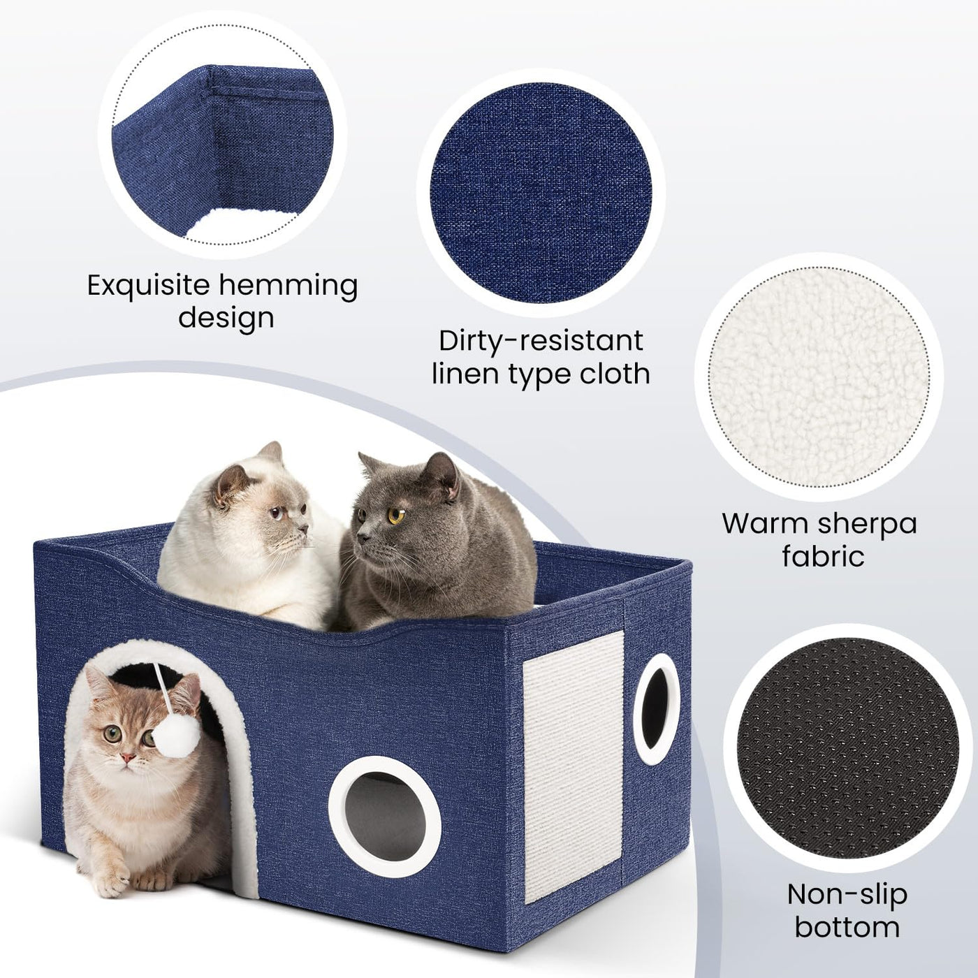 Heeyoo Cat House For Indoor Cats - Large Cat Bed Cave With Fluffy Ball And Scratch Pad, Foldable Cat Houses & Condos, Cat Cubes,