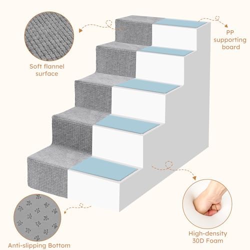 Heeyoo Dog Stairs For Small Dogs,5-Step Dog Steps For High Bed And Couch, High-Density Foam Pet Steps With Supporting Board, Non