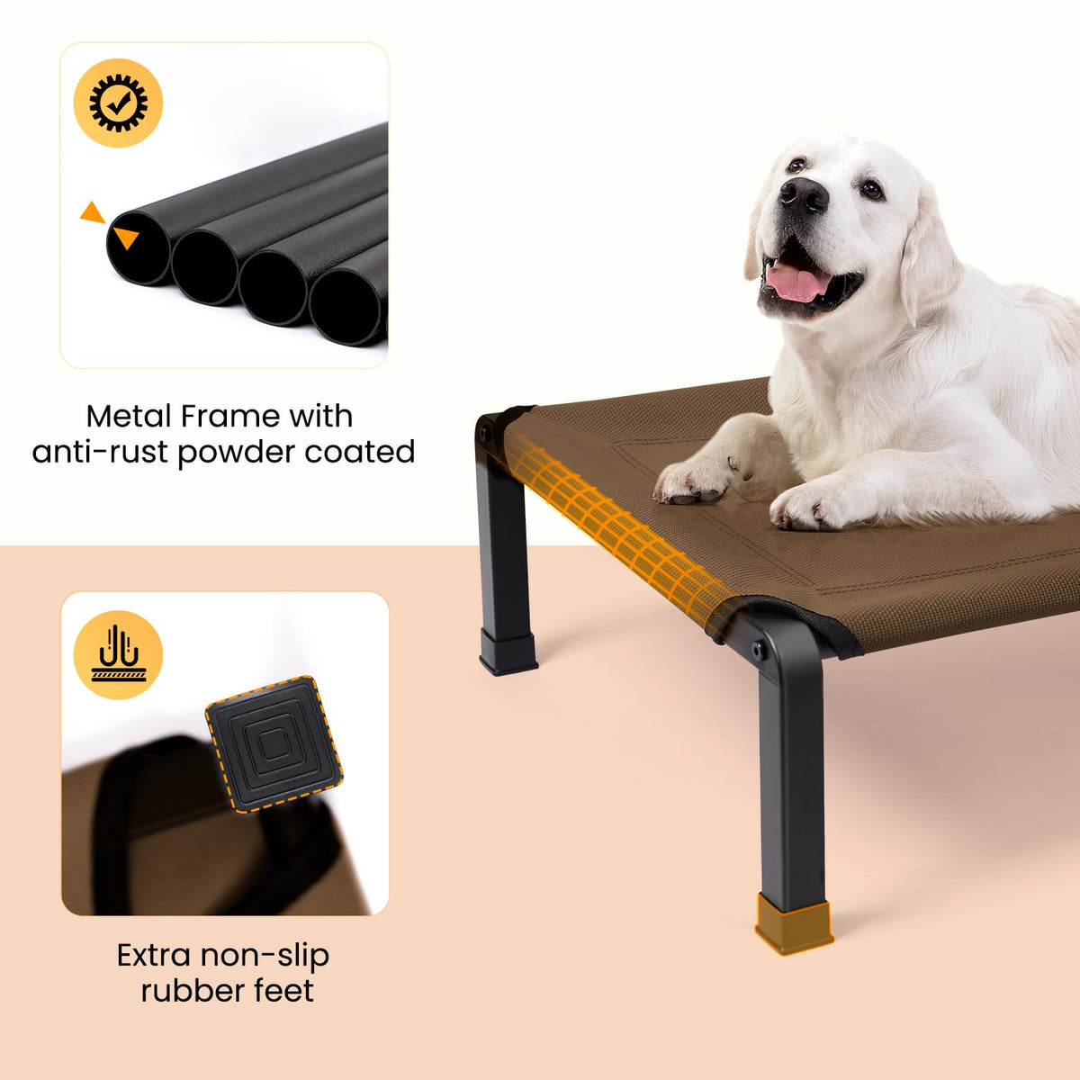 Heeyoo Elevated Dog Bed, Cooling Raised Pet Cot With Chew Proof Mesh Fabric And Steel Frame, Portable Dog Cot Bed With No-Slip Rubber Feet For Outdoor Indoor Use