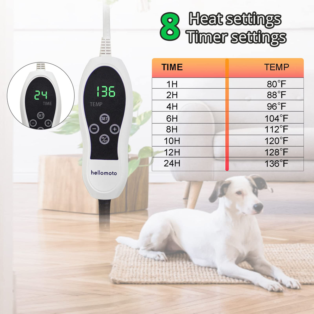 Hellomoto Pet Heating Pad, 12 Heat Settings Dog Cat Heating Pad With Timer, Electric Pads For Dogs Cats With Chew Resistant Cord