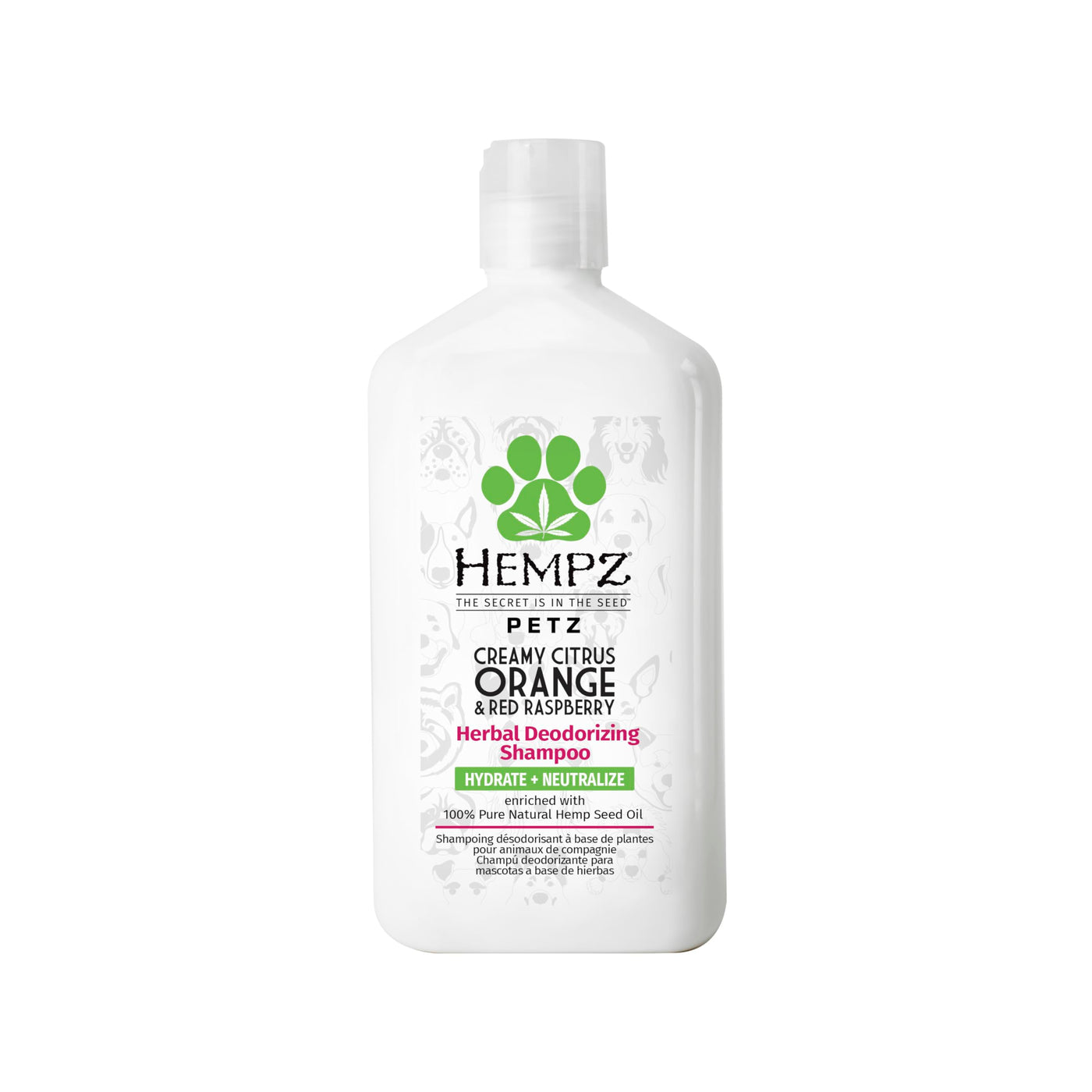 Hempz Petz Dog Shampoo, Creamy Citrus Orange & Red Raspberry Herbal Deodorizing Cleanser, 17 Oz.