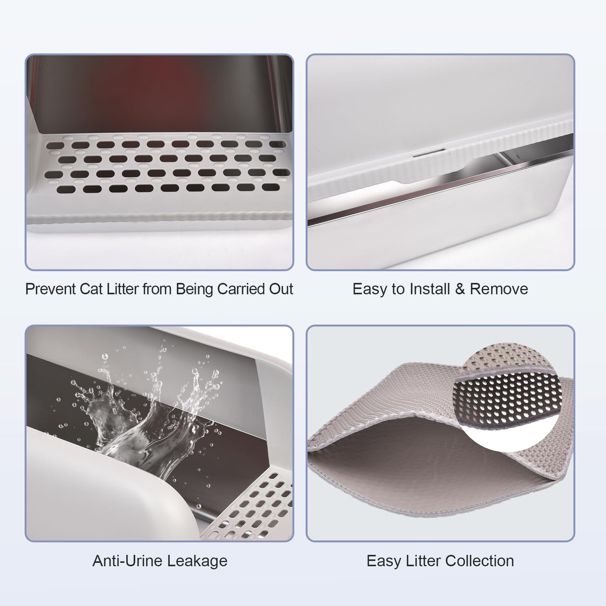 When You'Re Looking For A High-Quality Litter Box, Henkelion Stainless Steel Cat Litter Box Is Definitely Your Best Choice! Made From Selected 201 Stainless Steel, It Is Sturdy, Durable And Easy To Clean, Providing A Healthy And Clean Living Space For Cats. Its Unique Design With Moderate Depth Effectively Prevents Litter From Splashing Out, Keeping Your Home Tidy. Thoughtful Details, Such As Smooth Edges, Protect Your Cat'S Delicate Paws. Choose The Stainless Steel Litter Box To Give Your Cat Thoughtful Care And Let Them Grow Up Healthy And Happy! Easy To Clean Just Rinse With Water Or Wipe With A Damp Cloth Sturdy Stainless Steel The Stainless Steel Construction Of Litter Box Is Durable For Offering A Long-Lasting Service Time Smooth Round Corner Prevent Accidental Scratches On You And Your Pet During Installation And Use Prevent Cat Litter From Being Carried Out Anti-Litter Tracking Pedals At The Entrance Greatly Reduce The Footprint And Collect And Filter Litter From The Cat'S Paws, Minimizing Mess And Keeping Floors Clean Anti-Urine Leakage The Overlapping Design Of This High Sided Cat Litter Box Ensures That The Urine Stays In The Litter Box And Doesn'T Seep Through The Seam Easy Litter Collection Double Layer Cat Litter Mat Ensure The Floor Keep Litter-Free All The Time. Its Unique Filter Pedal Design Helps Stop Cat Litter From Getting Tracked Out
