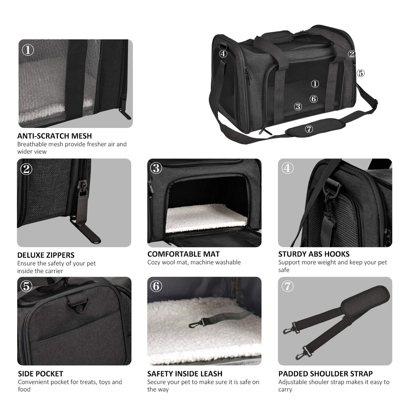 Henkelion Cat Carriers Dog Carrier Pet For Small Medium Cats Dogs Puppies Up To 15 Lbs, Tsa Airline Approved Soft Sided, Collapsible Travel Puppy - Black
