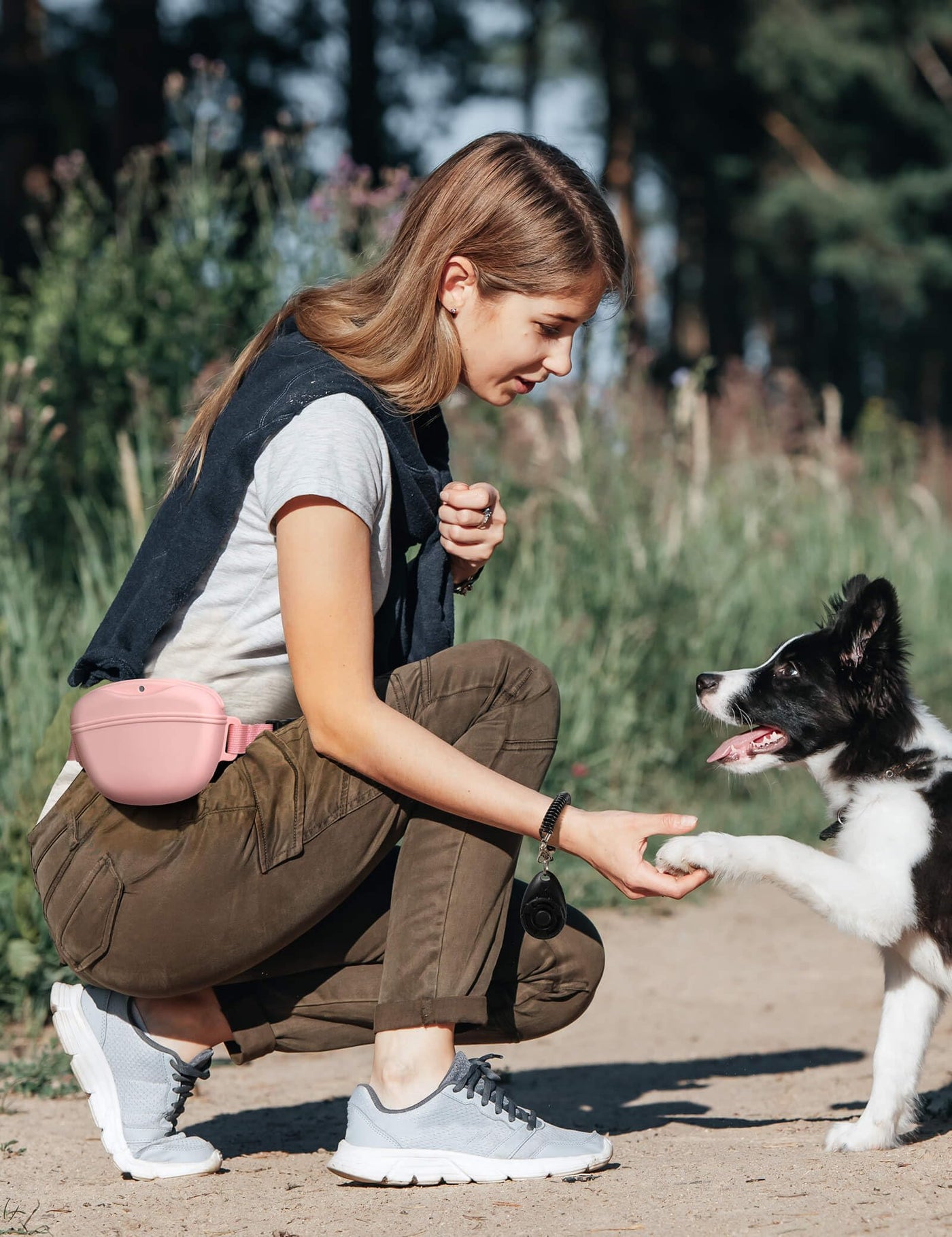 heouvo Dog Treat Pouch with Training Clicker, Upgrade Stronger Magnetic Closure to Avoid Spilling, 1.67 Cup Silicone Treat Bag F
