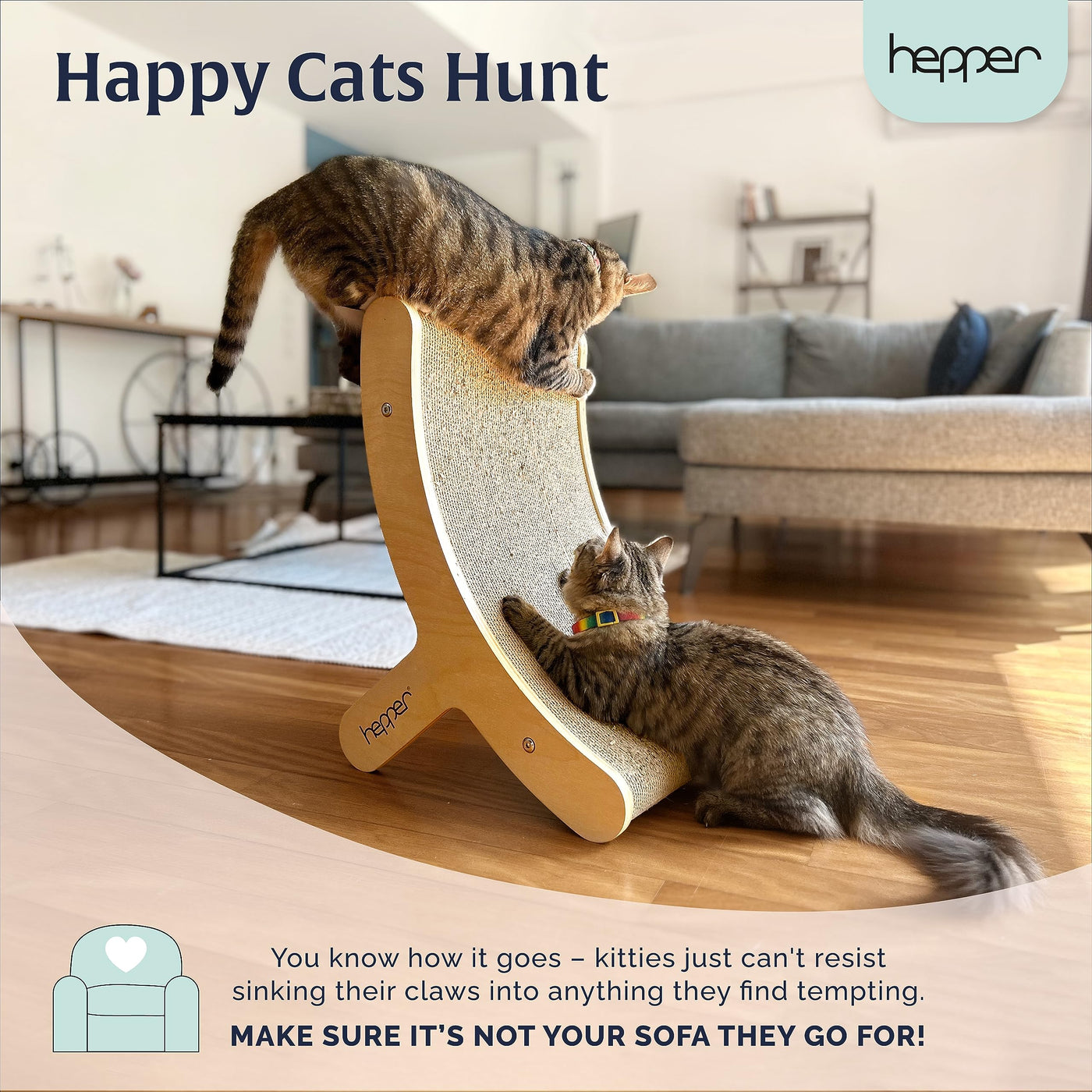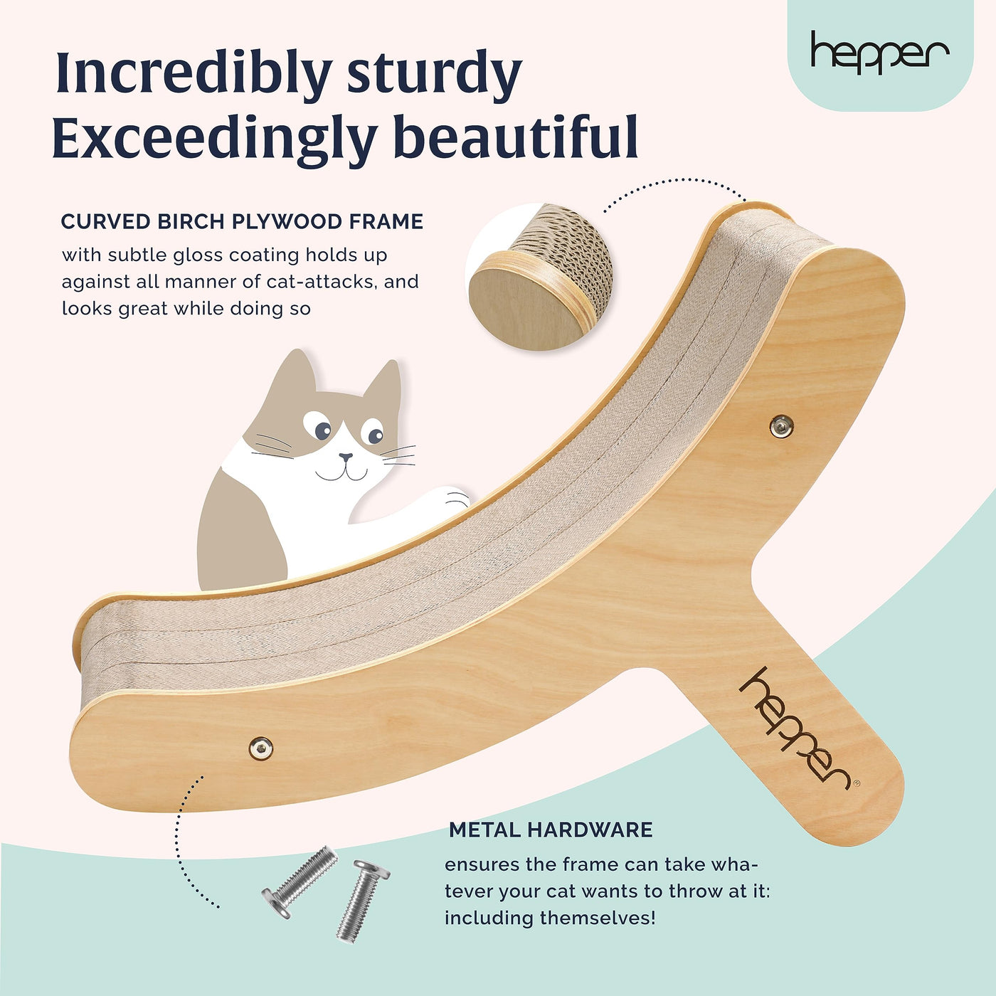 Hepper Hi-Lo Cardboard Cat Scratcher With Real Wood & Metal Frame - 3-Position Cat Scratchers For Indoor Cats - Curved Cat Scrat