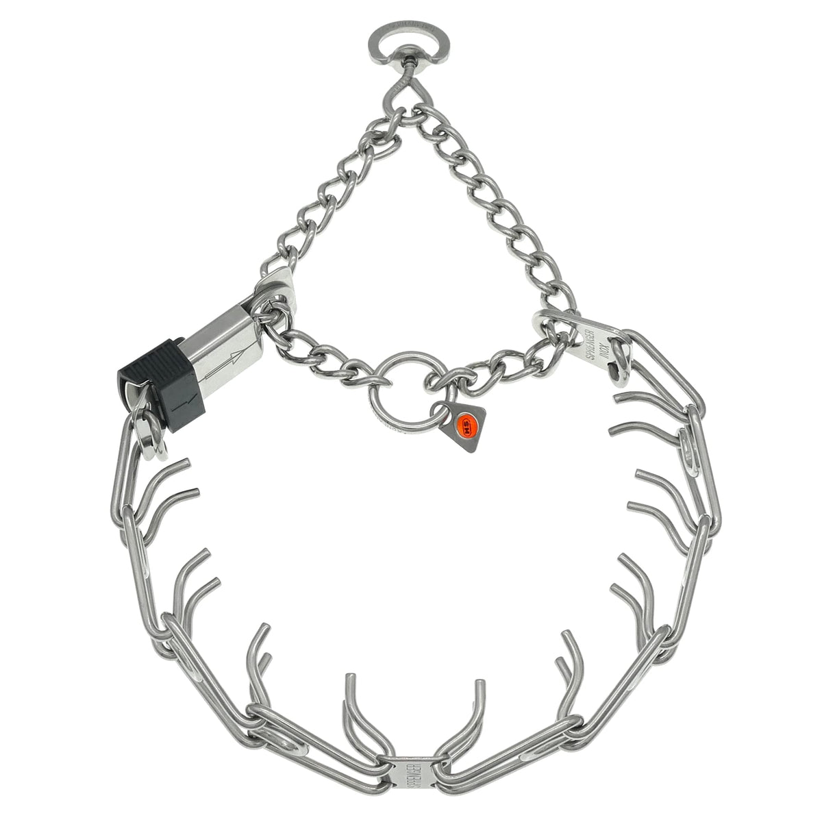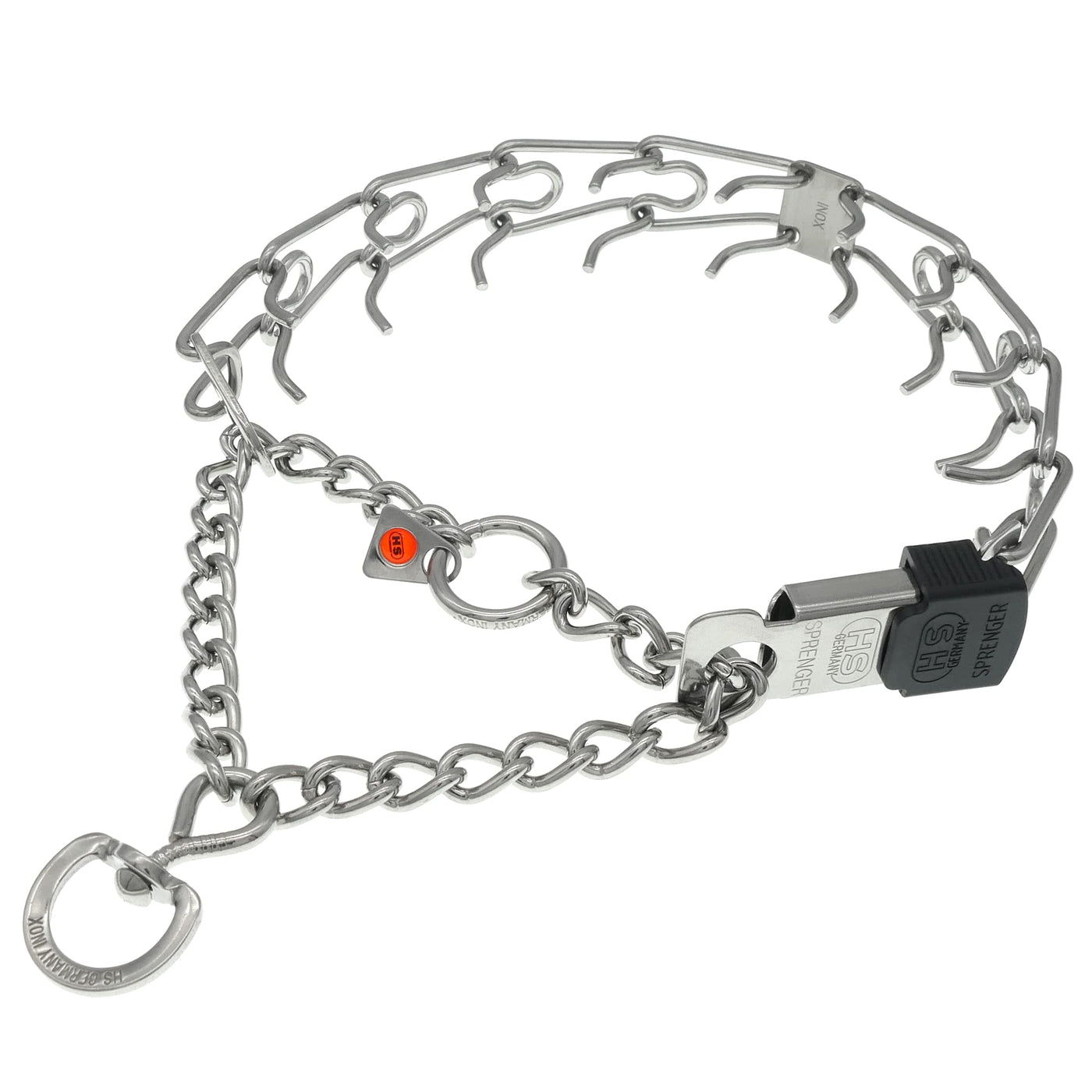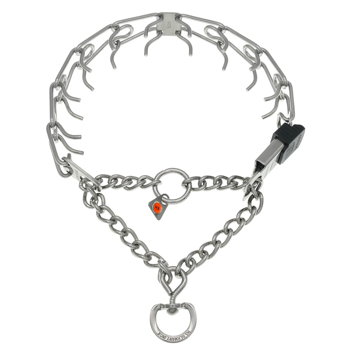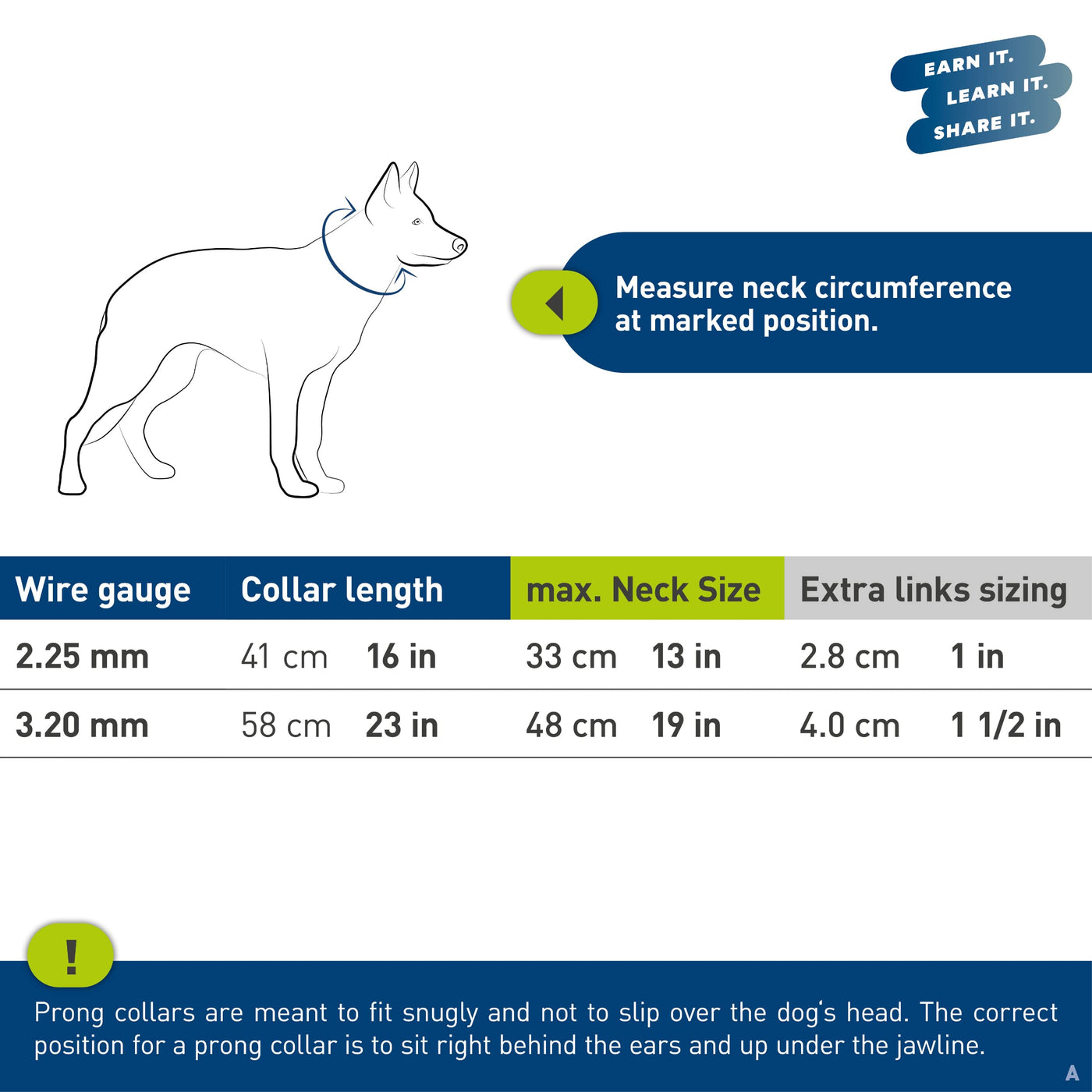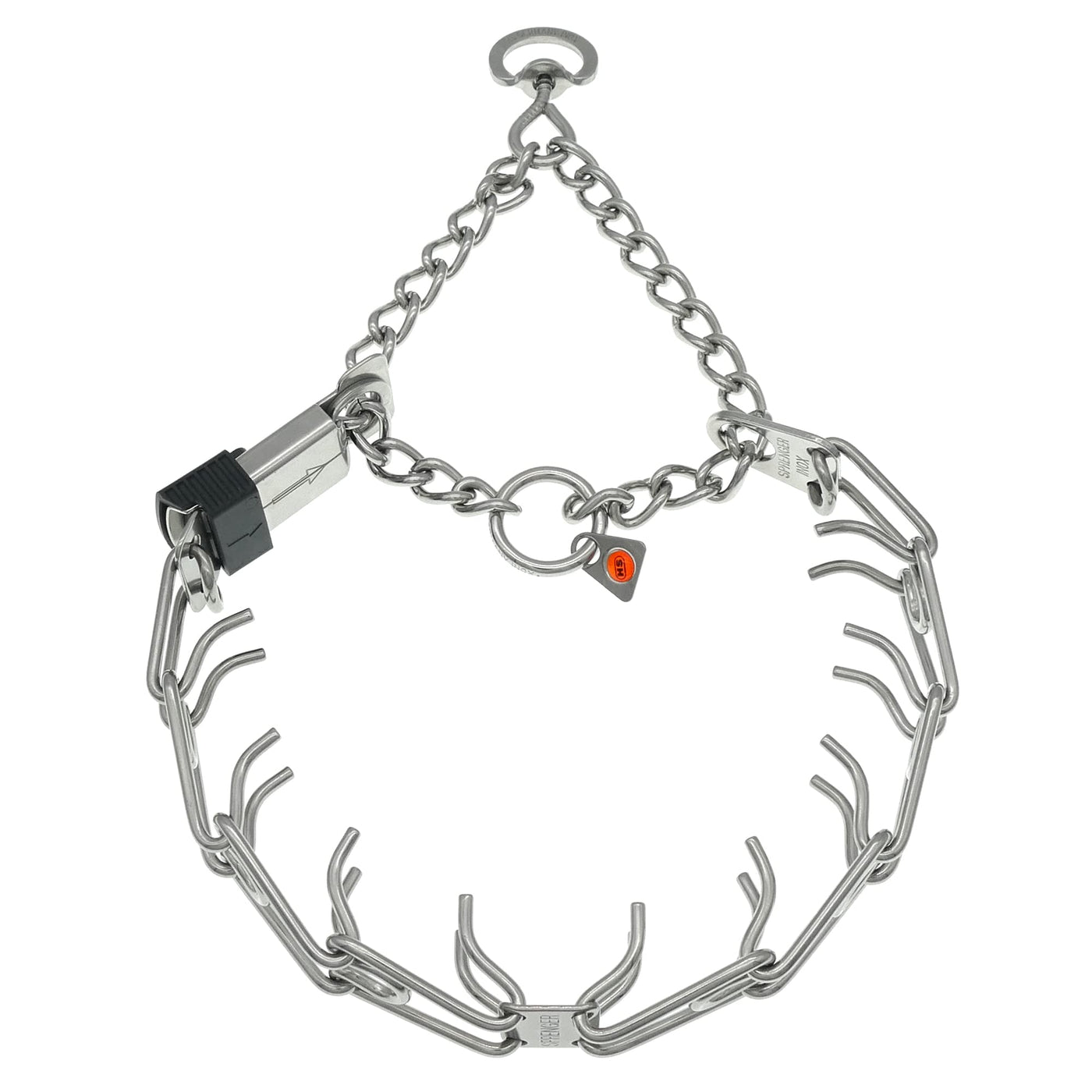 Size:Herm. Sprenger Training Collar&Nbsp;With Overall Length 23 Inches (58 Cm) By 3.2 Mm Wire Gauge. Designed For Dogs With The Neck Size Of&Nbsp;Up To 19 Inches (48 Cm).&Nbsp;&Nbsp;Features And Functionality:The Prong Collar Is Equipped With All Herm Sprenger Features Of A Professional Training Collar In Addition To An Added Comfort Of A No Pull Design. The Collar Includes:&Nbsp;A Solid Center Plate;Assembly Chain;Swivel D-Ring For Leash Connection;Cliclock Buckle.Comfort And Security Are Offered By Patented Cliclock Buckle Made Of Stainless Steel And High-Grade Plastic, Including Of The Sliding Jacket To Protect The Clasp Against The Unintended Opening And Soiling. The Plastic Jacket Slides Out Completely From An Open Buckle.&Nbsp;If It Has Been Lost, The Function Of The Buckle Mechanism Will Not Be Affected. The Buckle Functions As Intended As Long As You Hear A Loud Click At The Time Of The Closing.&Nbsp; Adjustable Length:&Nbsp;The Collar Can Be Enlarged By Adding Links. To Shorten The Collar - Remove Desirable Number Of Links. Additional Links Must Be Purchased Separately.&Nbsp;&Nbsp;Professional Quality:Made In Germany With Precise German Engineering, Reliability, And Quality By The World'S Foremost Manufacturer Of Training&Nbsp;Prong Collars For Dogs.