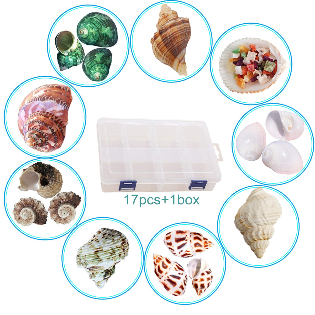 Hermit Crab Shells 17PCS (9 Types) Medium Small Growth Turbo Seashells 0.6-1.6 Inch Various Openning Size Natural