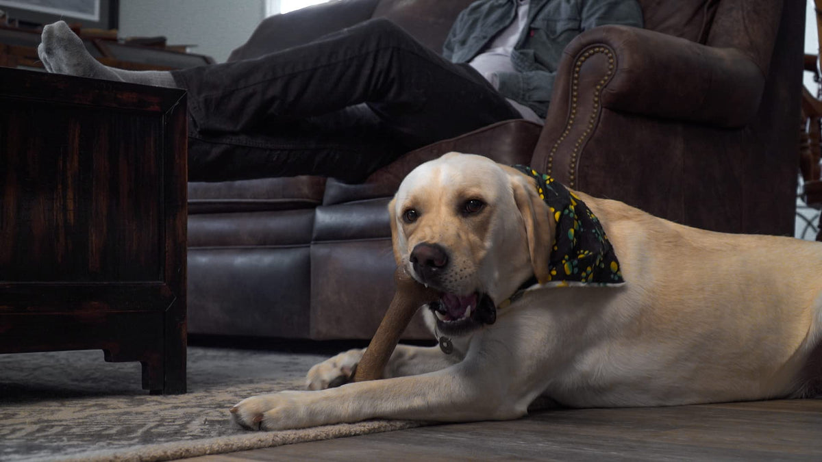 Q: What makes the Hero Bonetics™ Femur Bone Dog Chew Toy different from other dog chews?A: The Hero Bonetics™ Femur Bone is crafted from a proprietary blend of real wood and nylon, designed to be extremely durable while also being highly palatable for dogs. This unique material composition allows it to outlast traditional dog chews, ensuring a longer-lasting and safer chewing experience.