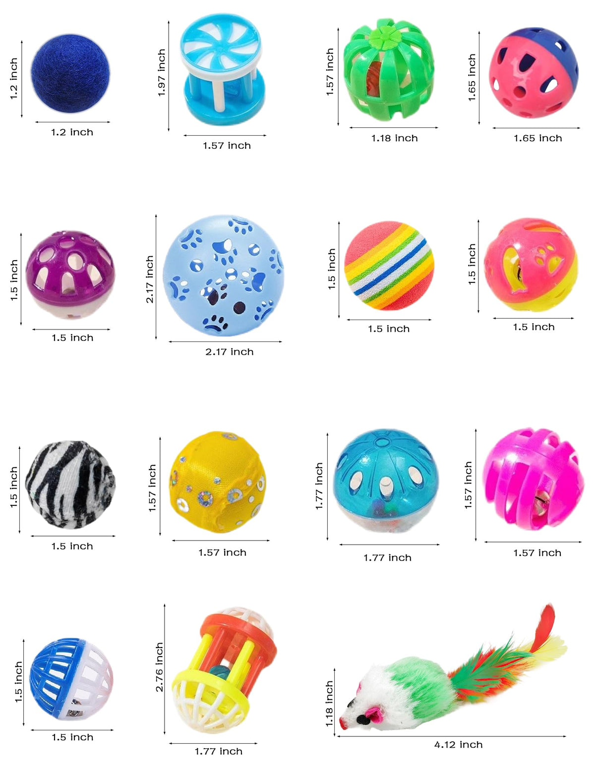 Enhance Your Cat'S Playtime With This Comprehensive 15-Piece Set Of Cat Toys, Including 8 Jingly Bell Balls, 1 Catnip Mouse, And 6 Plush Balls. These Cat Toys For Indoor Cats Are Designed To Satisfy Natural Hunting Instincts, Offering Colorful Options That Stimulate Visual Senses And Promote Active Play. The Lightweight Plush Balls Are Gentle On Paws, Making Them Ideal For Kittens And Adult Cats. With Built-In Bells, The Bell Balls Create Enticing Sounds That Draw Your Cat'S Attention, Enhancing Interactive Play Sessions. Perfect For Solo Or Shared Fun, These Toys Help Keep Your Furry Friend Engaged, Healthy, And Entertained. Made From Safe, Non-Toxic Materials, This Set Ensures Durable And Long-Lasting Enjoyment.