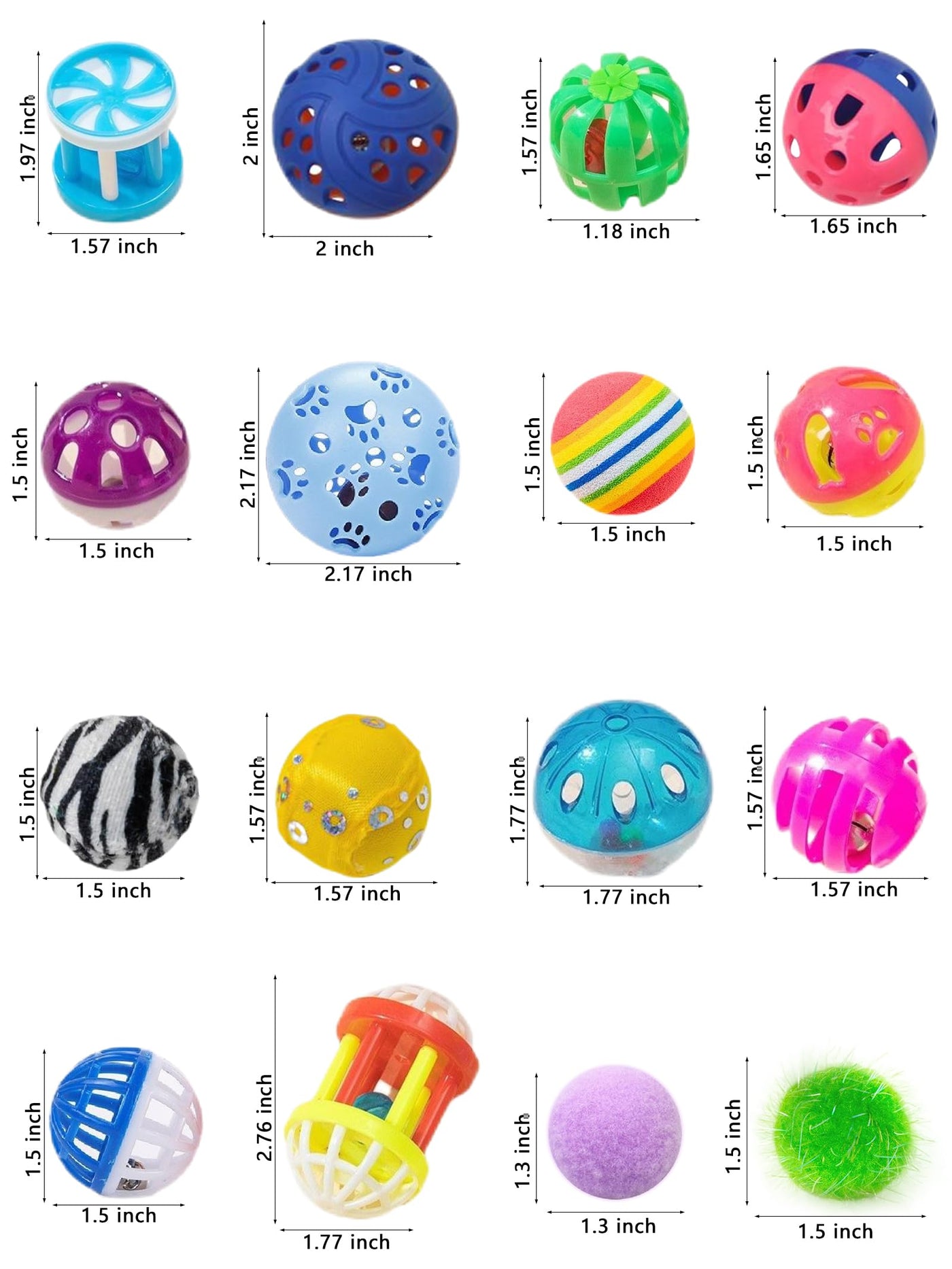 This Cat Toy Variety Pack Includes 20 Jingle Balls, 10 Plush Reflective Balls, And 10 Soft Plush Balls. Toys Feature Built-In Bells To Attract Cats And Are Made From Strong Non-Toxic Materials. Sized From 1.5 To 2.2 Inches, They Suit All Cat Sizes. Colorful Designs Enhance Appeal, And The Robust Construction Ensures Toys Withstand Tough Play. Ideal For Interactive And Self-Play, These Toys Keep Indoor Cats Entertained And Active. A Great Choice For Cat Toys Variety Pack And Cat Toys For Indoor Cats. Each Piece Promotes Physical And Mental Health Through Play.