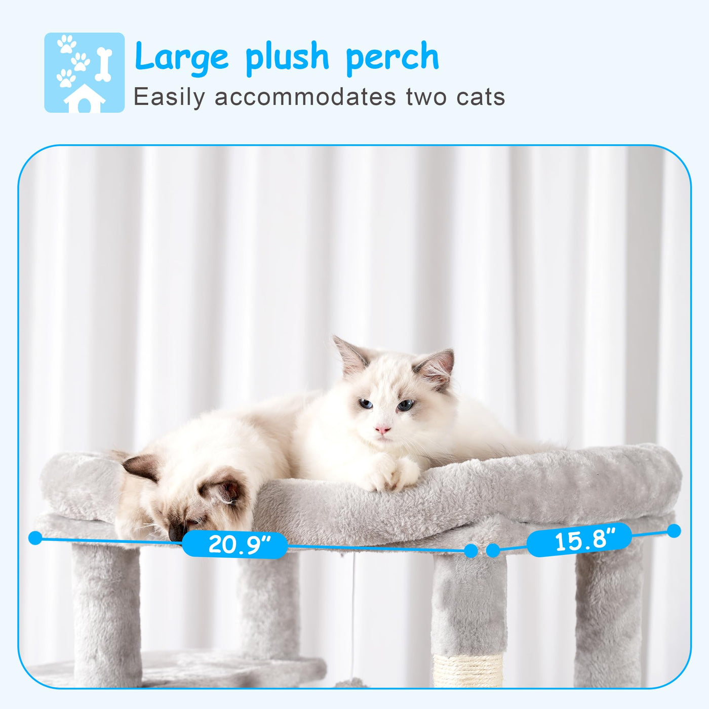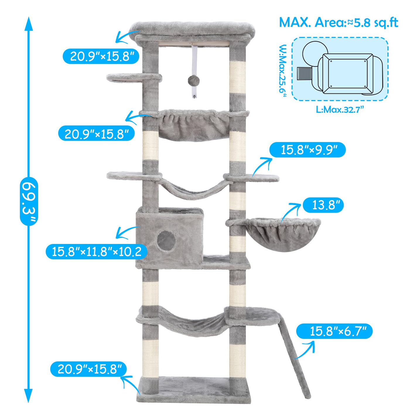 Product Description Perfect Observation -High Top Perch Offers The Perfect View For Looking Out The Window Or Observing Their Domain Blissful Sleep -Snooze In The Cave, Dream In The Hammock, Or Nap On The Perch. Sleepyheads Love Every Spot Easy To Clean -Hair, Dirt, And Crumbs...No Worries. They Can Be Easily Cleaned With A Lint Roller Or Vacuum Cleaner Good Customer Service -Providing Customers With Quality Products And Attentive Service. Customer'S Satisfaction Is Our Greatest Pursuit. If You Encounter Any Problem, Please Feel Free To Contact Me. Specifications: -Color: Light Gray -Material: Particleboard, Plush, Sisal -Product Size: 32.68L X 25.59W X 69.29H(83 65 176Cm) -Product Weight: 43.65 Lb Package Contents: -1 X Assembly Kit -1 X Instructions
