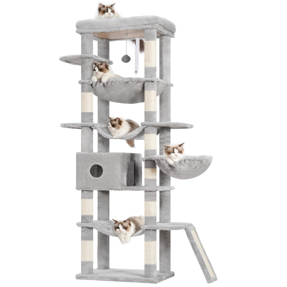 Hey-Brother Cat Tree, 69.3-Inches Multi-Level Plush Cat Tower For Indoor Cats With Large Top Perch, Extra Spacious Hammock, 2 Ha