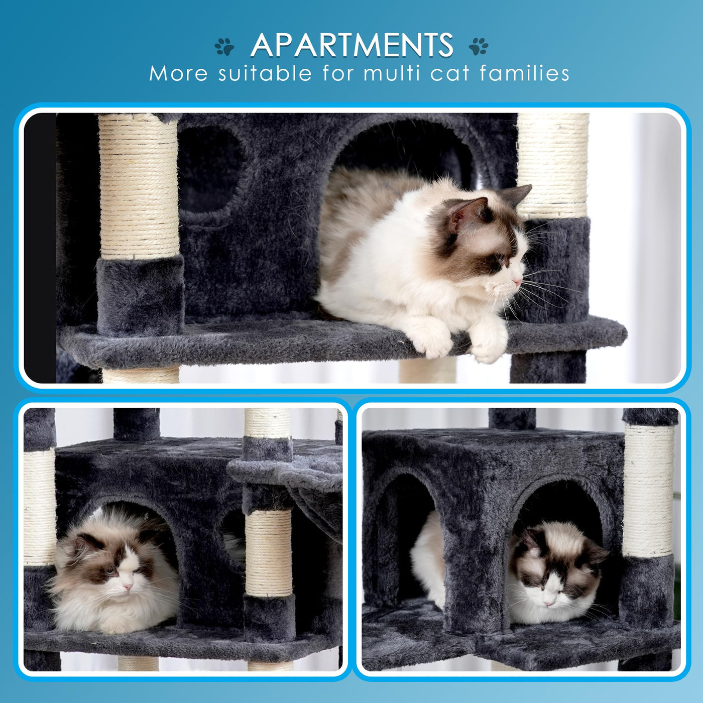 Hey-Brother Cat Tree, 74 Inches Multi-Level Xl Large Cat Tower For Indoor Cats With Three Cat Condos, Two Large Top Decks And Ca