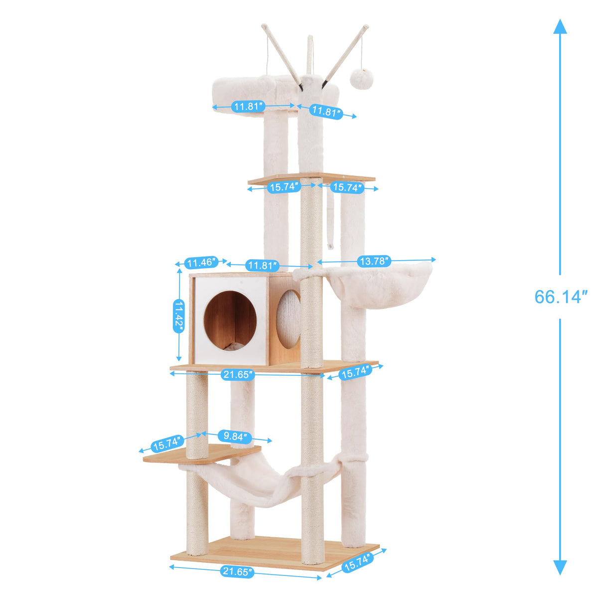 Hey-Brother Wooden Cat Tree, 66.1 Cat Furniture With Scratching Posts, Modern Cat Tower With Hammocks, Toys, Cat Condo, Walnut M