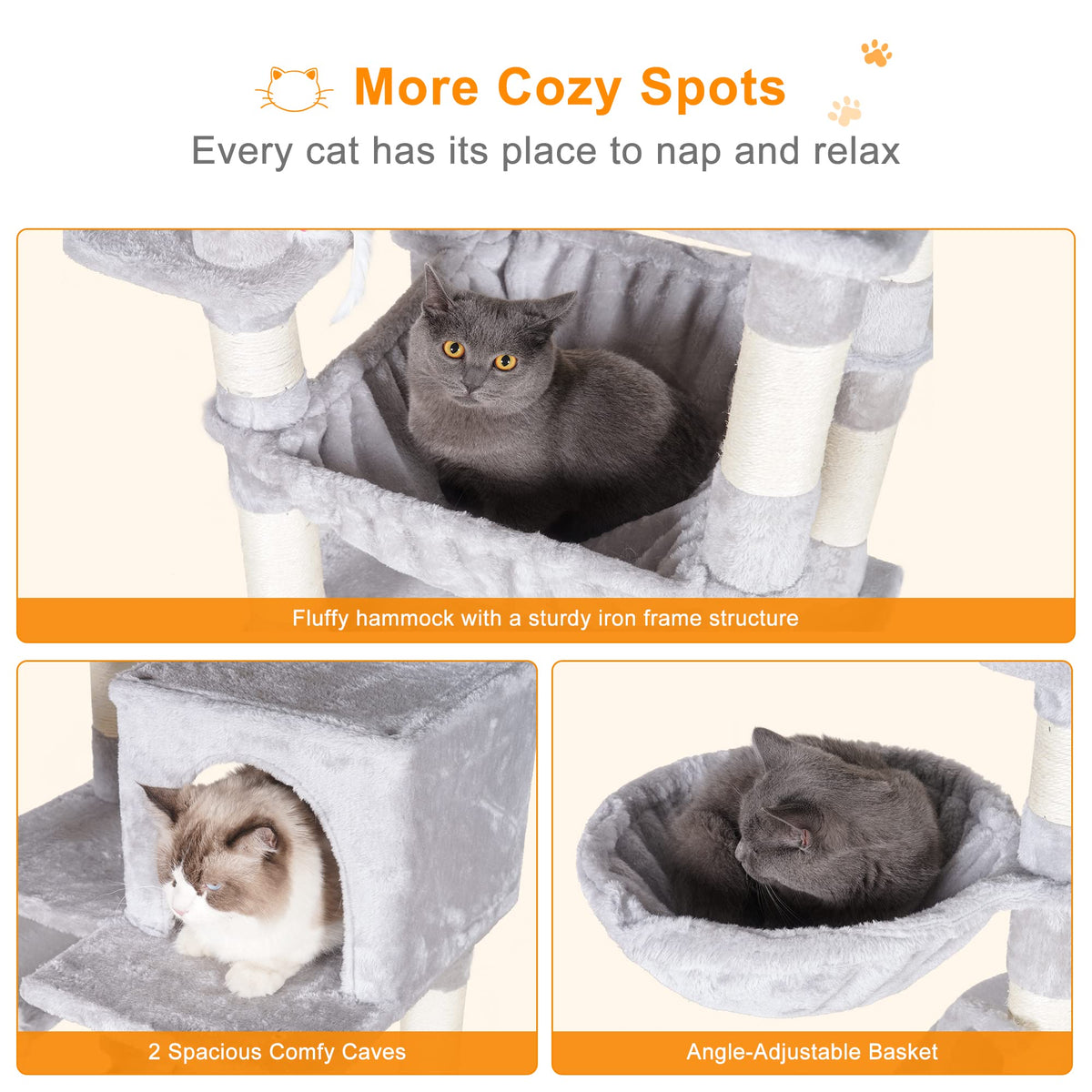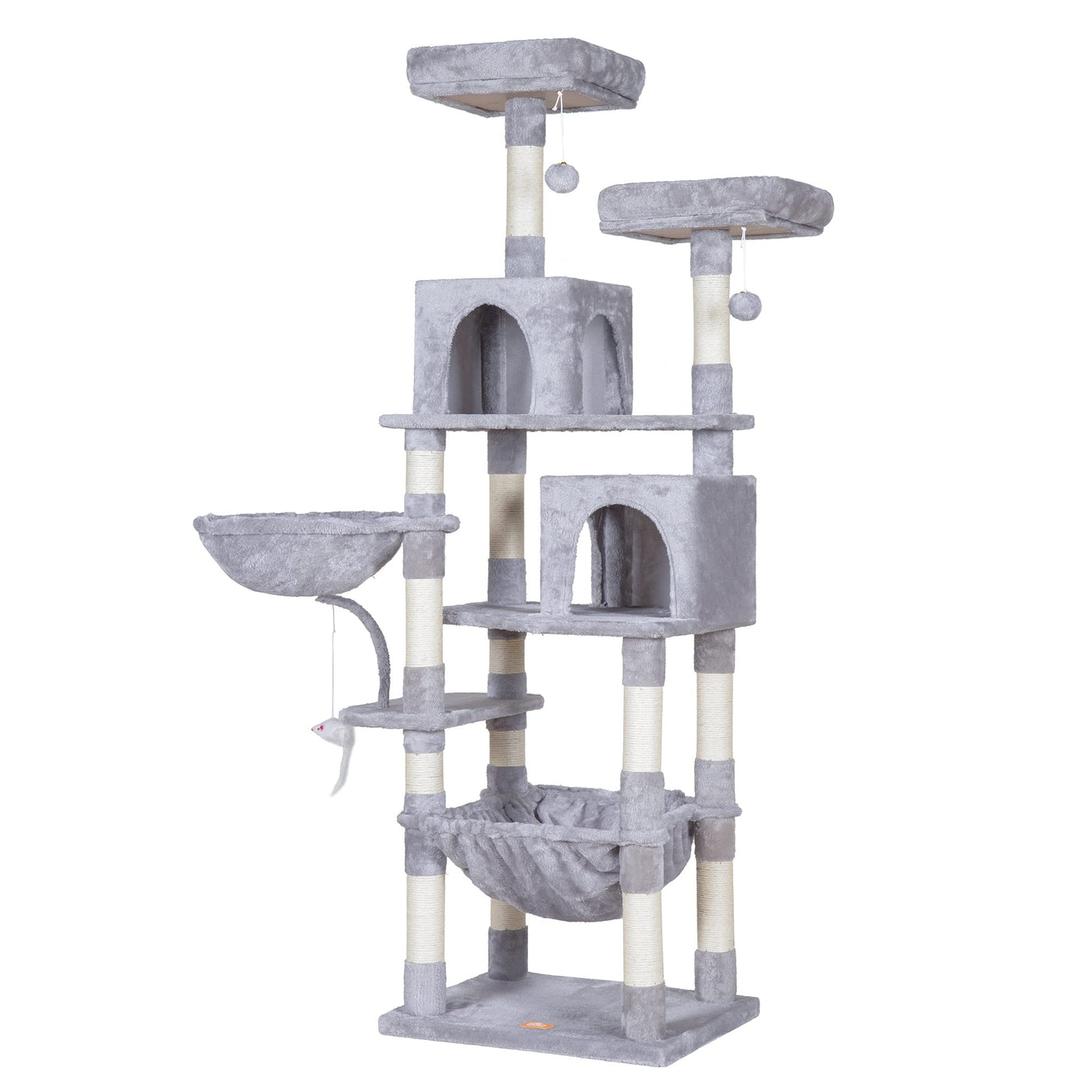 Heybly Cat Tree, 70 Inches Tall Cat Tower Condo With Toy For Indoor Large Cats, Cat House Furniture With Padded Plush Perch, Coz