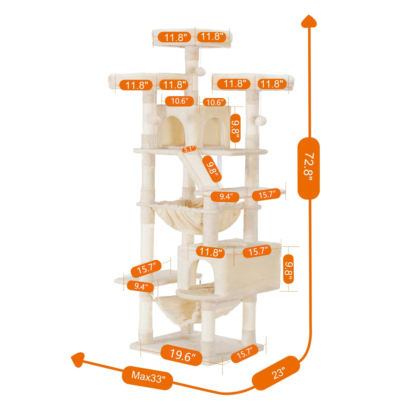 Heybly Cat Tree, 73 Inches Tall Cat Tower For Large Cats 20 Lbs Heavy Duty For Indoor Cats,Big Cat Furniture Condo For With Padded Plush Perch, Cozy Basket And Scratching Posts Beige Hct030M