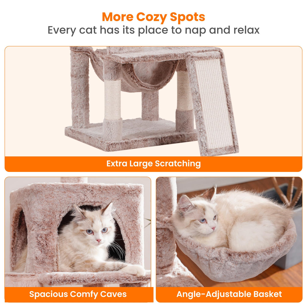 Heybly Cat Tree, Cat Tower For Indoor Cats,Multi-Level Cat Furniture Condo For Cats With Padded Plush Perch, Cozy Basket And Scr