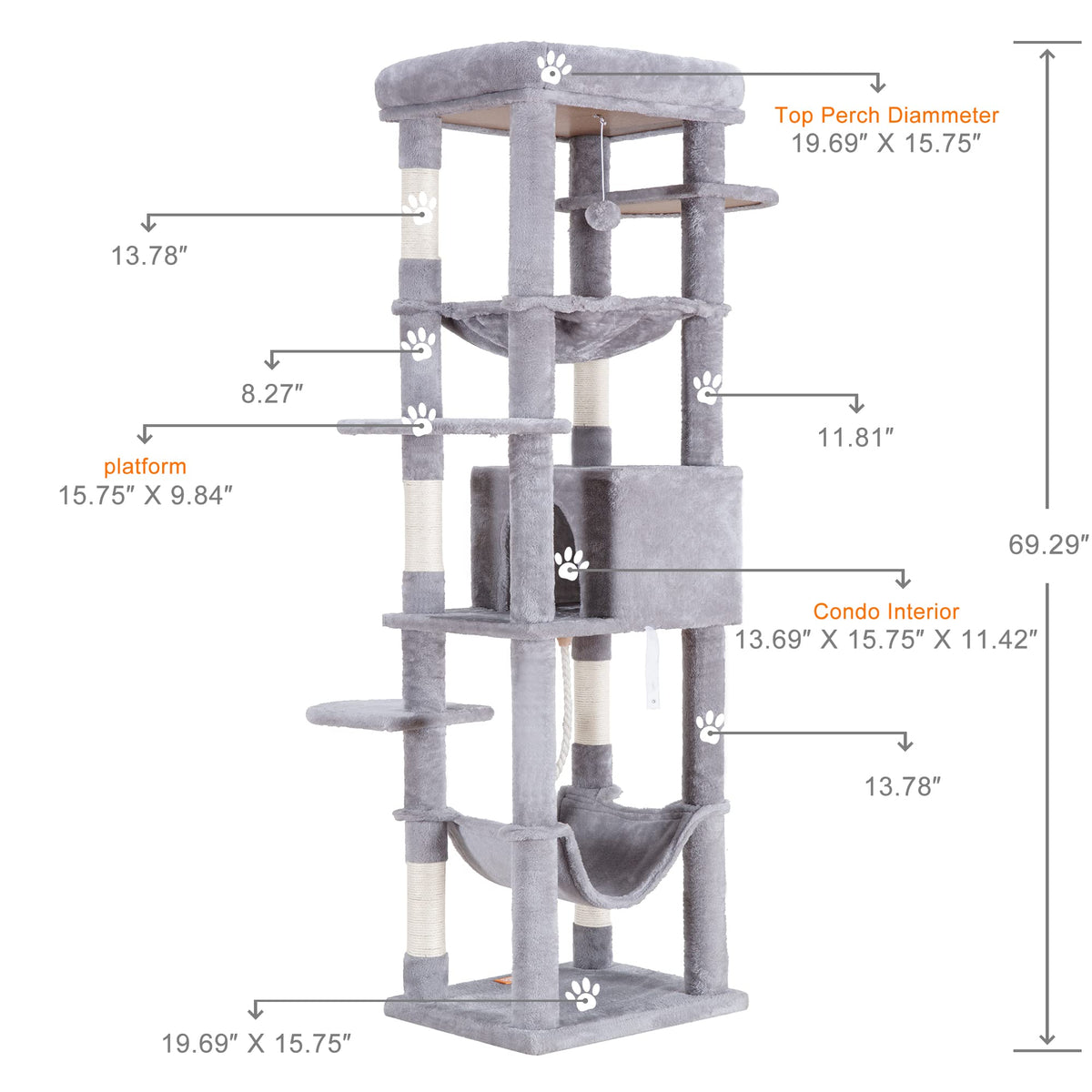 Heybly Cat Tree For Large Cats 20 Lbs Heavy Duty,69 Inches Xxl Cat Tower For Indoor Cats,Multi-Level Furniture Condo With Big Pa