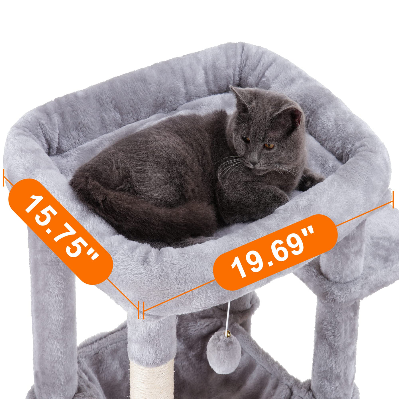 Specifications: Color: Light Gray Overall Dimensions: 19.7'' L X 15.7'' W X 69.3'' H (50 L X 40 W X 176 H Cm) Scratching Post Thickness: 2.79'' (7.1 Cm) Overall Product Weight: 35.6 Lbs (16.2 Kg) Package Weight: 37.8 Lbs (17.2 Kg) Assembly Required: Yes. All Hardware And Instructions Provided Materials: Frame Structure: Carb P2 Particle Board Exterior Cover: Faux Fur Fabric; Natural Sisal Rope