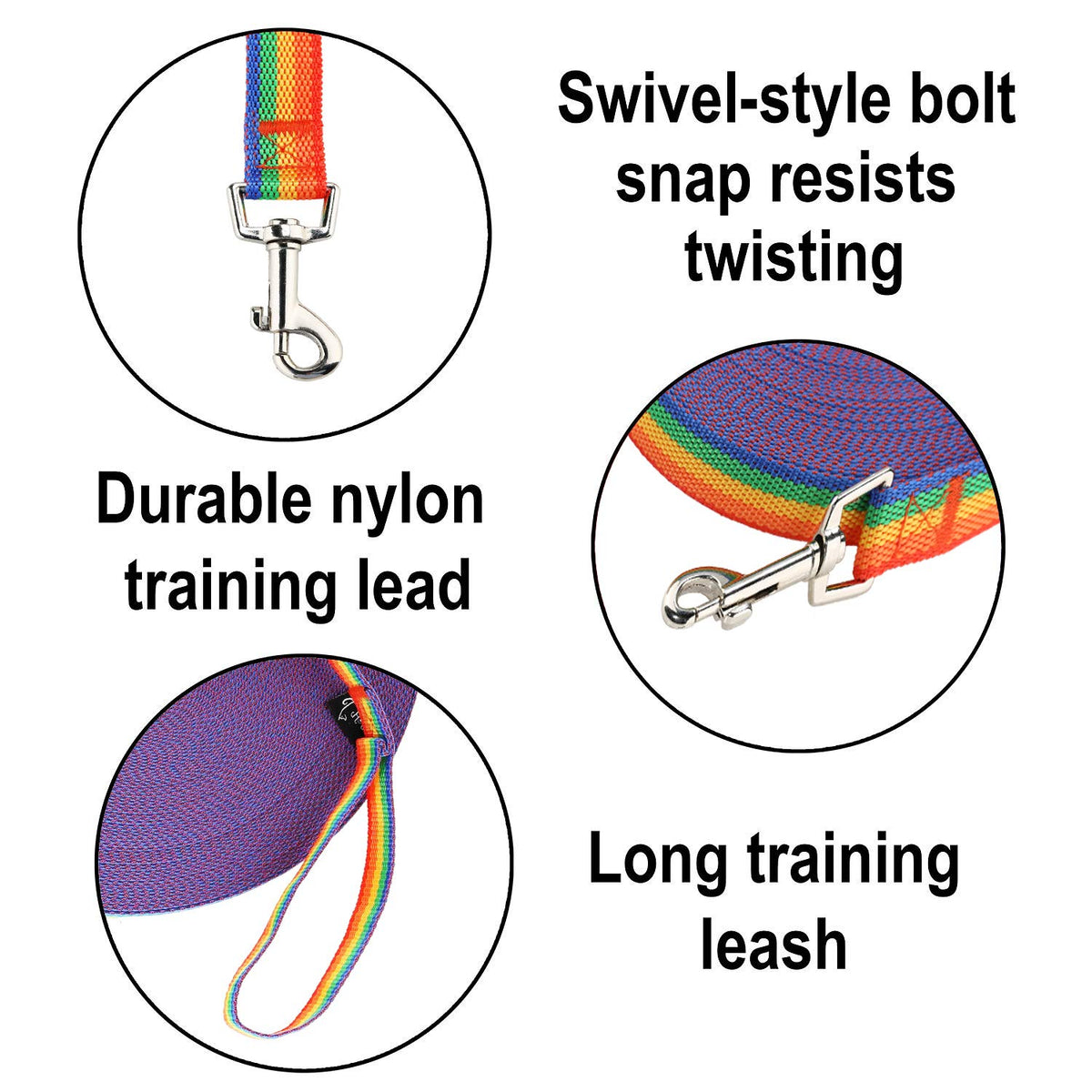 Hi Kiss Dog/Puppy Obedience Recall Training Agility Lead - 15Ft 20Ft 30Ft 50Ft 100Ft Training Leash - Great For Training, Play, Camping, Or Backyard (15 Feet, Rainbow)