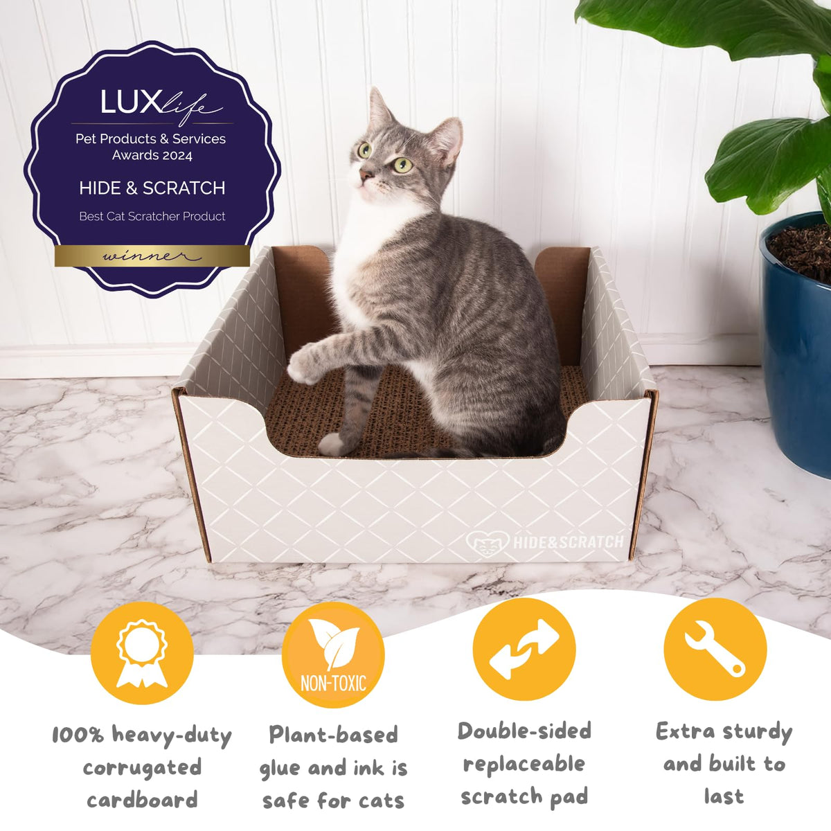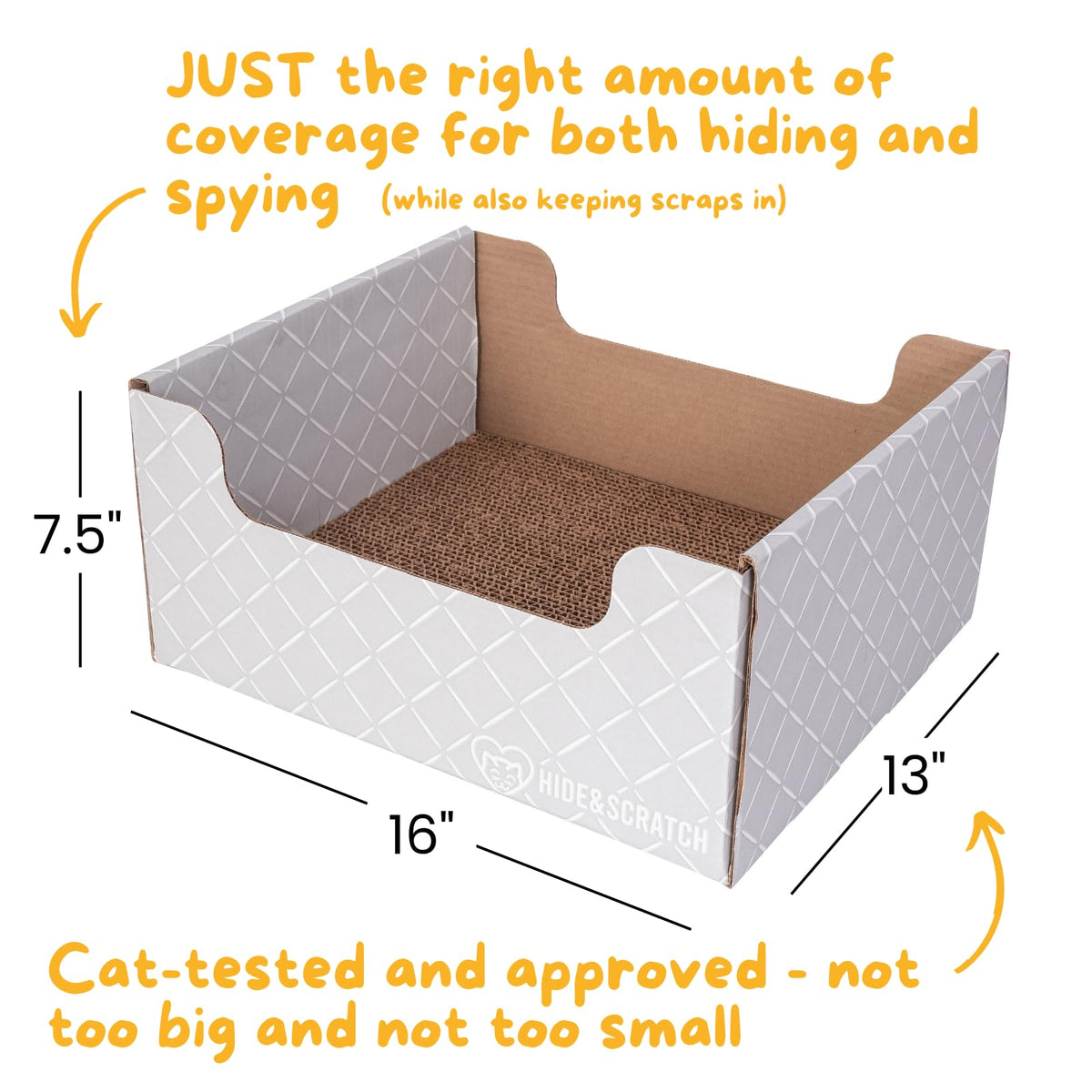 HIDE & SCRATCH Cardboard Cat Scratcher; Cat Scratcher Box and Bed with Refillable Double-Sided Cardboard Scratch Pad for Indoor