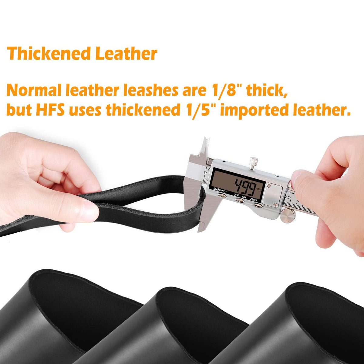Q: What is the length of the Highland Farms leather dog training leash?A: The Highland Farms Select Premier leather dog training leash measures 6 feet in length, making it an ideal choice for training and general obedience.