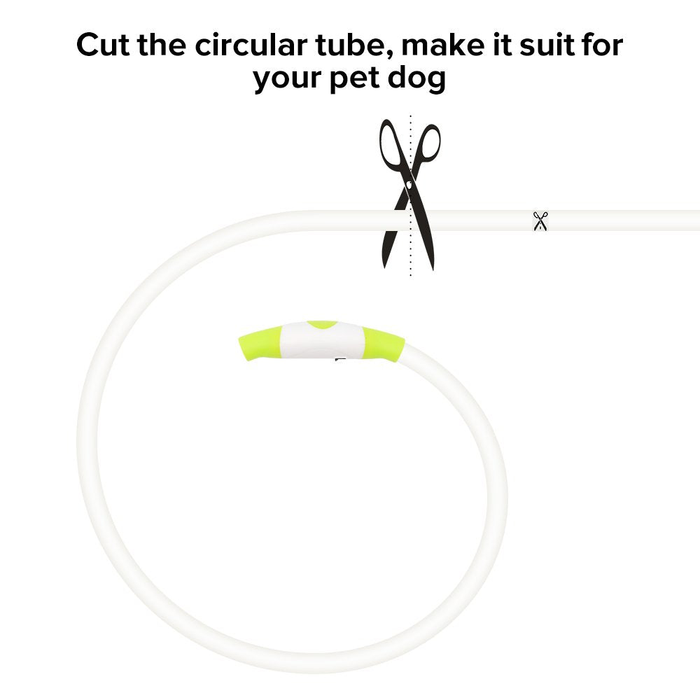 Q: How do I adjust the size of the HIGO LED Dog Collar?A: The HIGO LED Dog Collar is designed to fit all pets, measuring 70cm in length. You can easily customize the size by cutting the transparent TPU tube to the desired length, ensuring a perfect fit for your dog's neck.