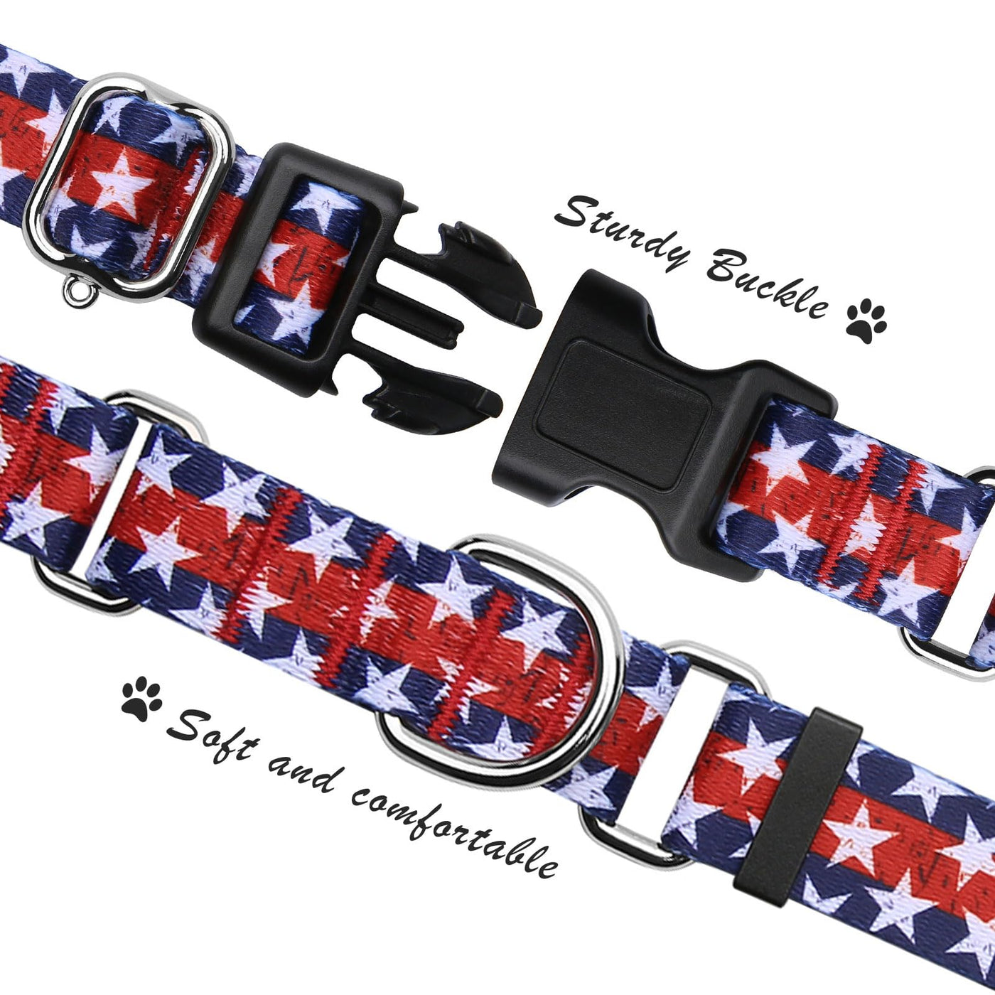 Hikiko American Flag Martingale Collar With Buckle Adjustable Soft Nylon Dog Collars For Small Medium Large Dog (Star,Large)