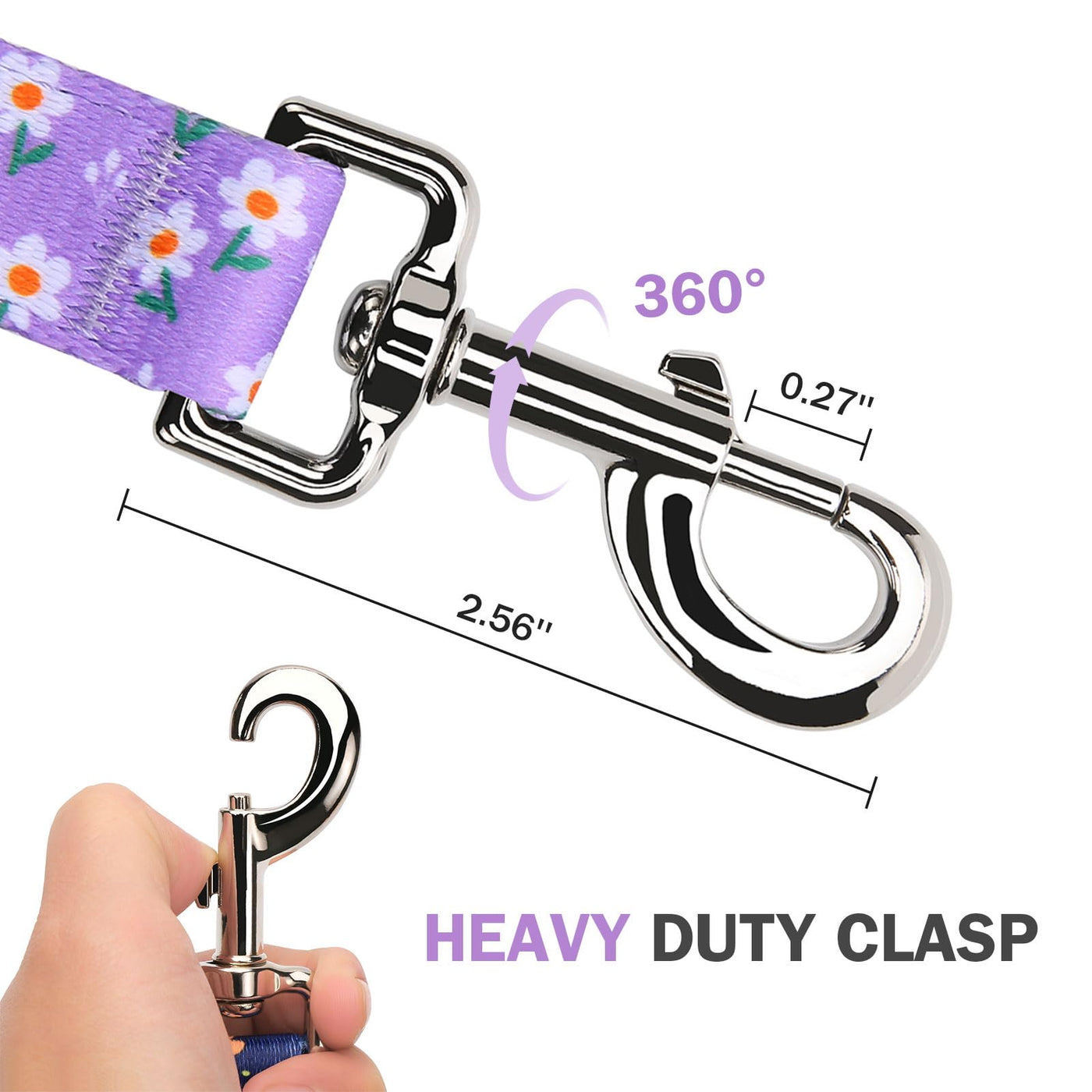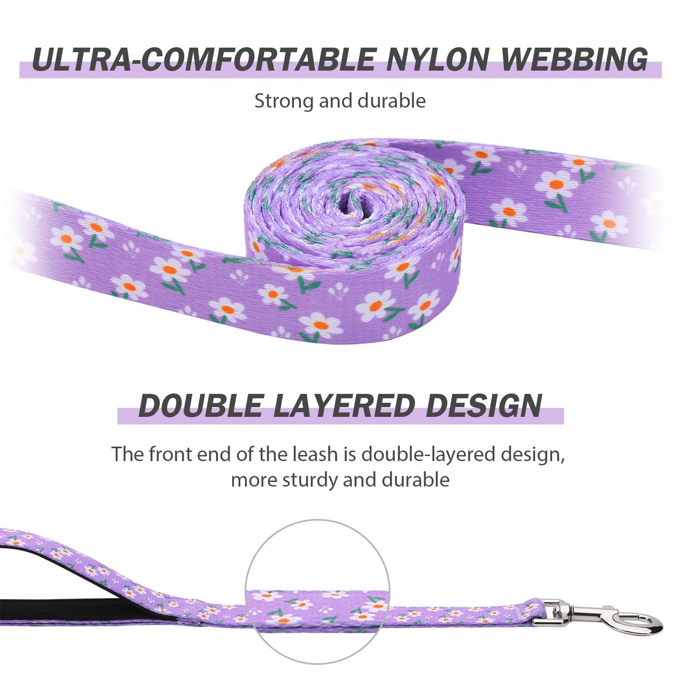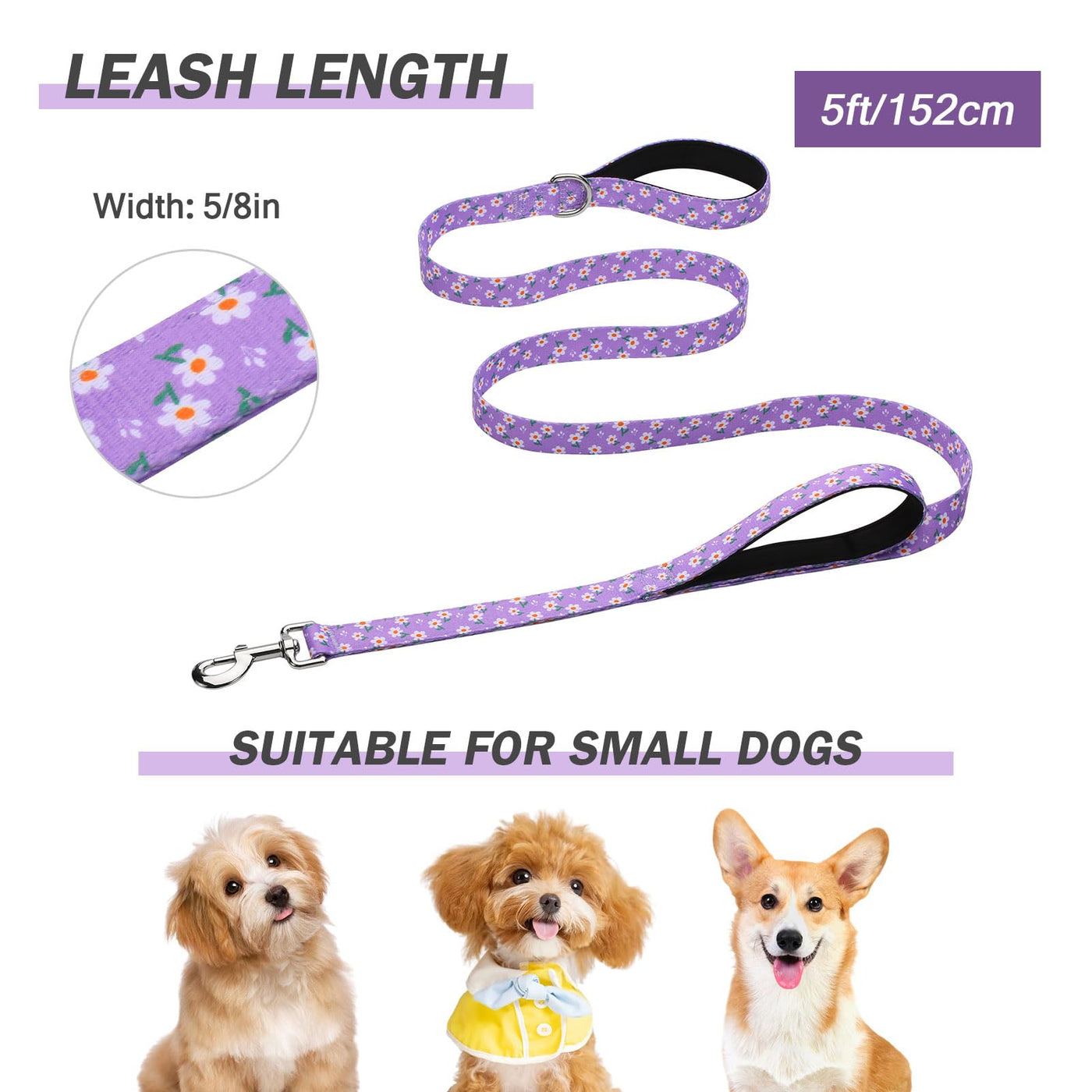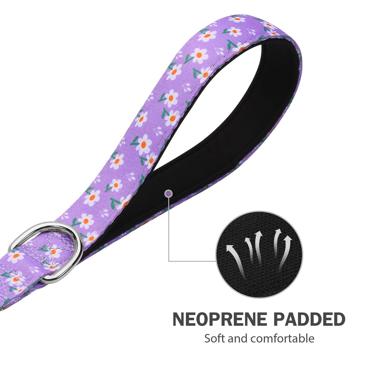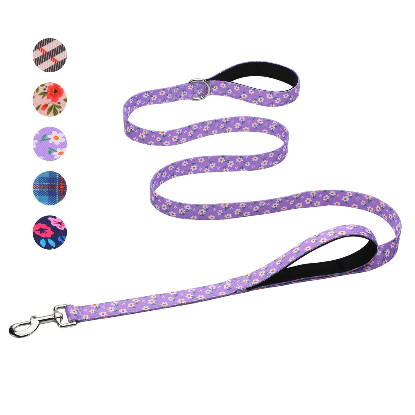 Hikiko Cute Girl Double Handle Dog Leash 5 Foot Padded Traffic Handles For Walking Training (Purple Floral, 5Ft)