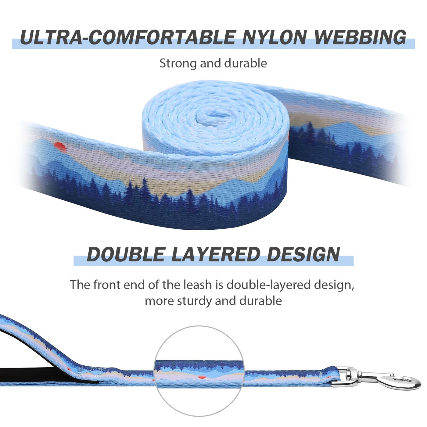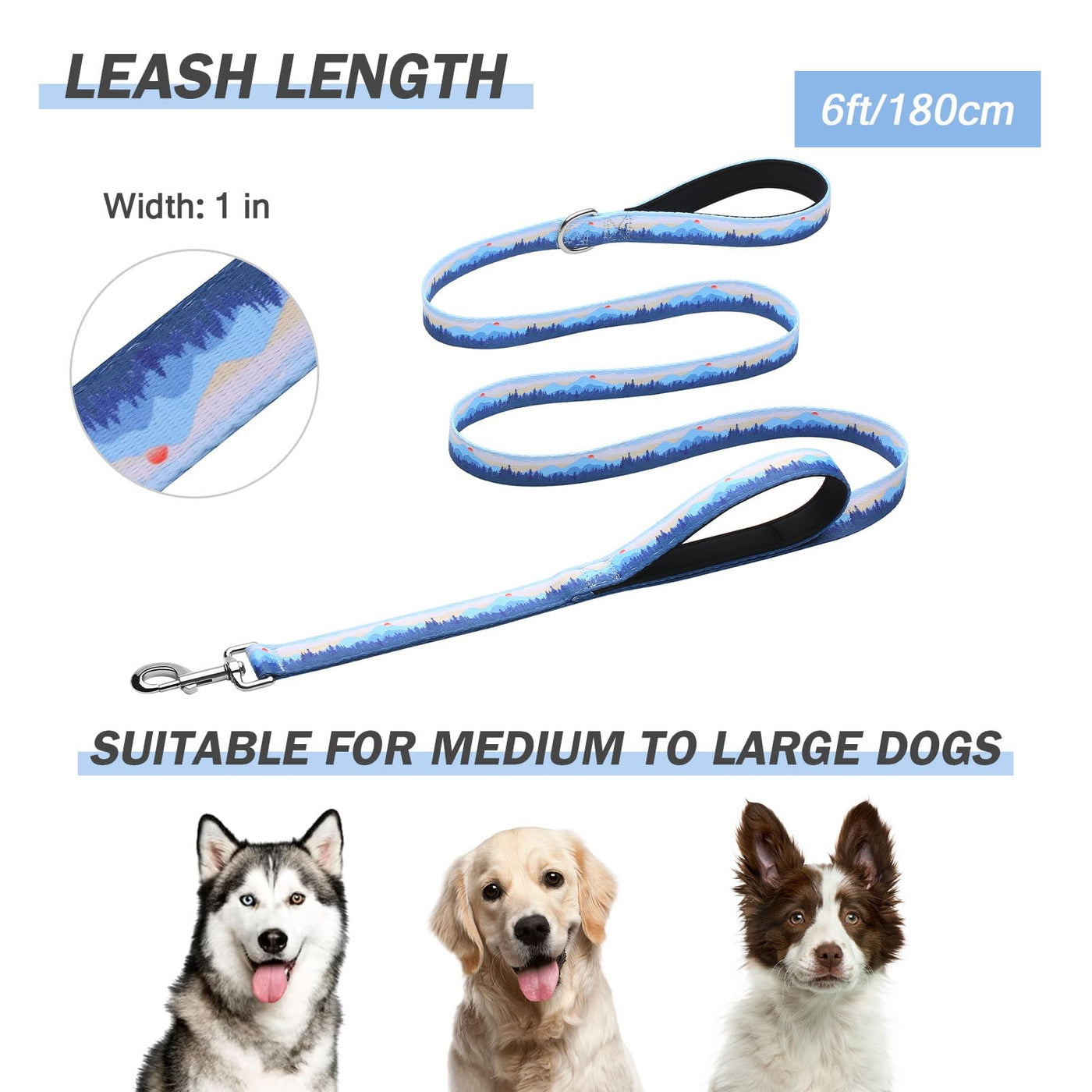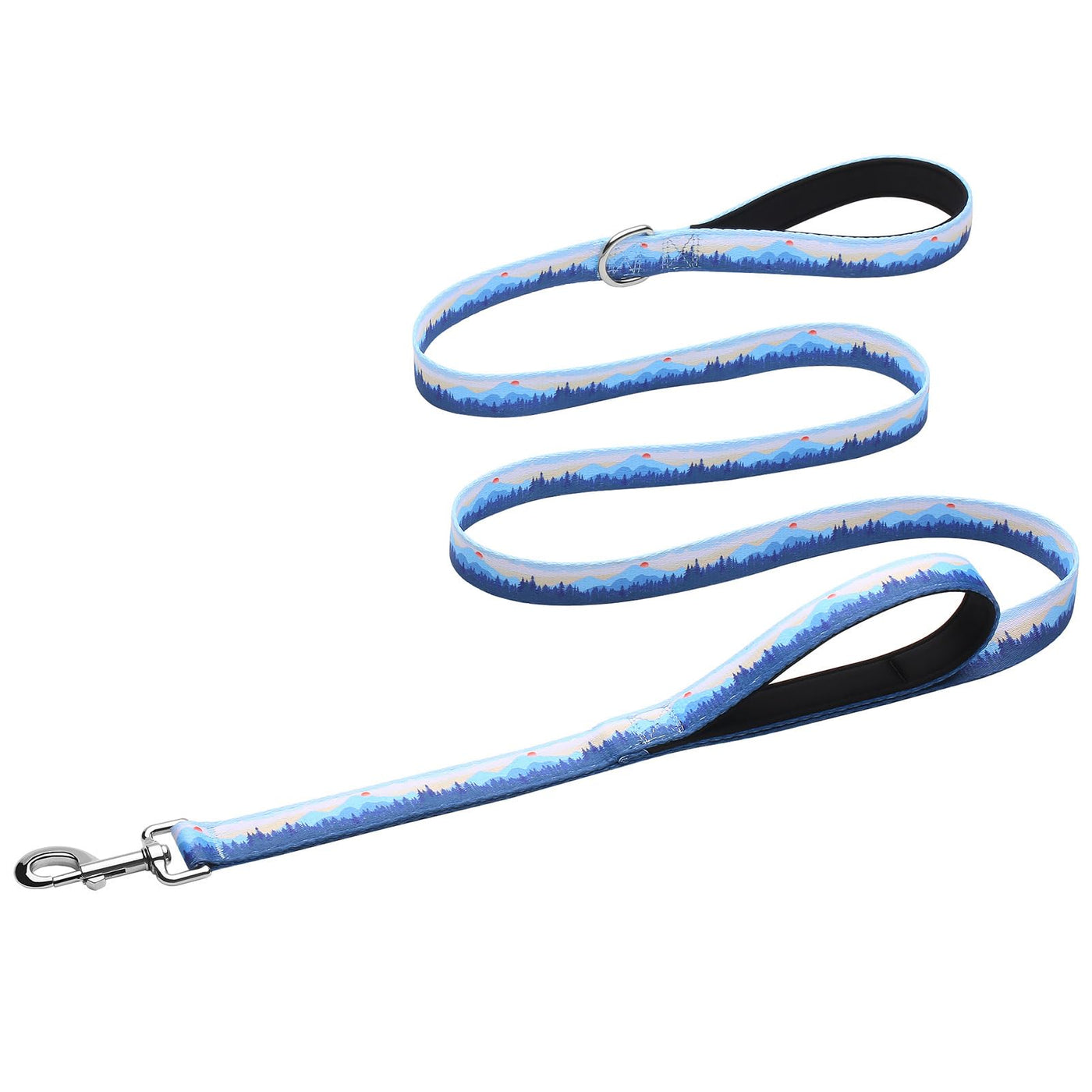 Hikiko Double Handle Dog Leash 6 Foot Strong Nylon Padded Traffic Handles For Walking Training (Blue Hill)