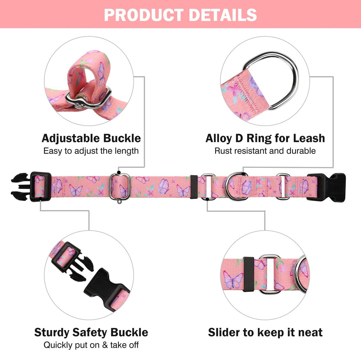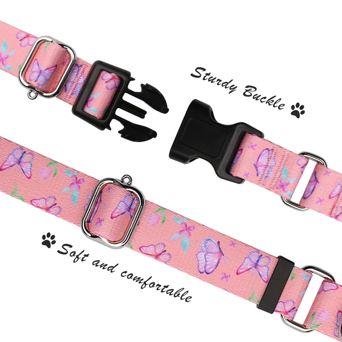 Hikiko Martingale Collar For Dogs Adjustable Soft Nylon Dog Collars With Cute Patterns For Small Medium Large Dog(Pink Butterfly